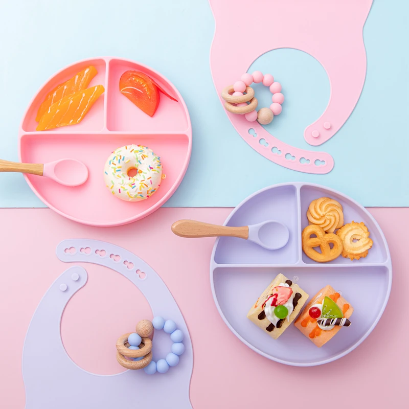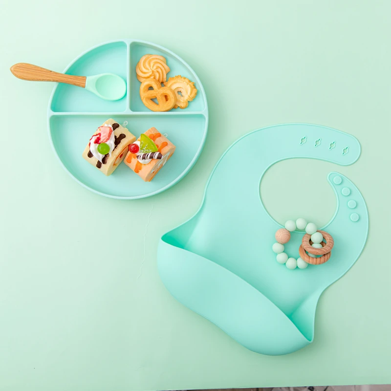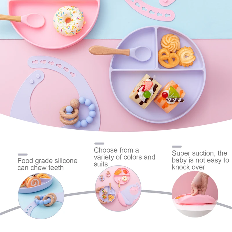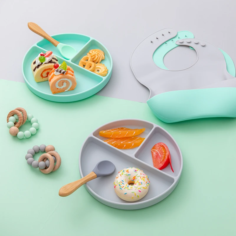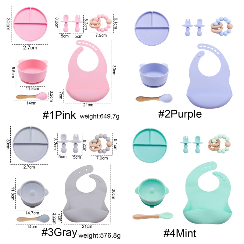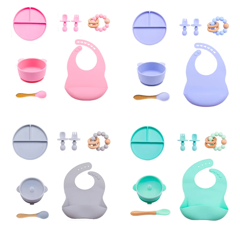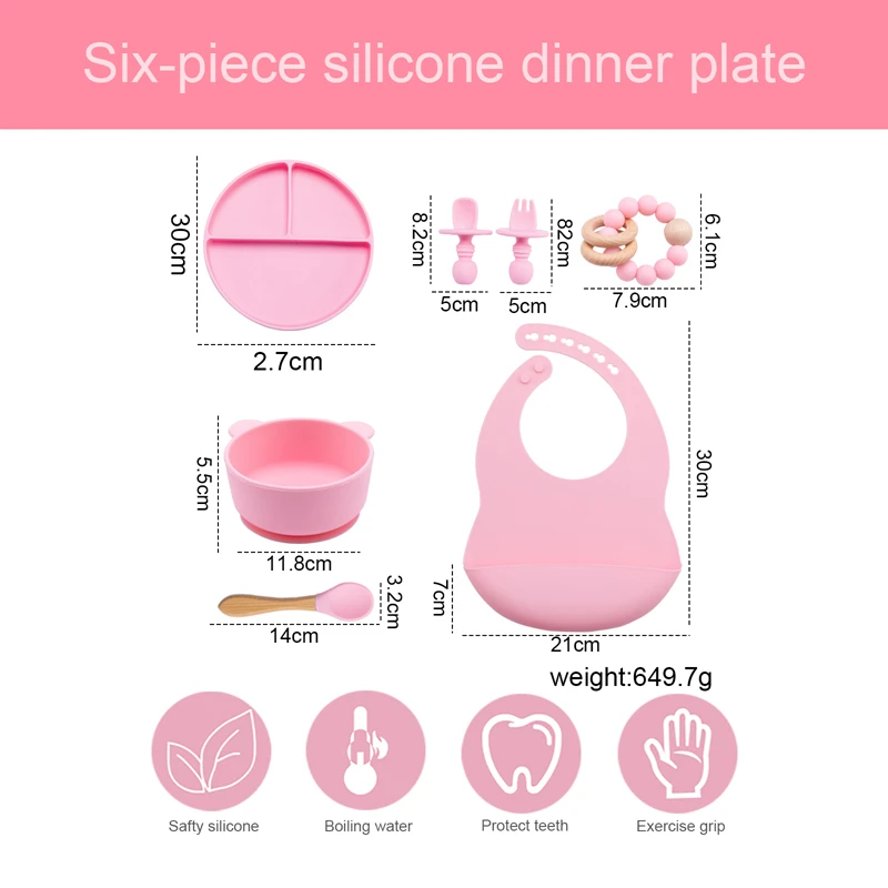 Набор из 7 предметов для кормления детей, без БФА, пищевой силикон, вилка, ложка, тарелка, миска, товары для кормления детей, детская посуда
