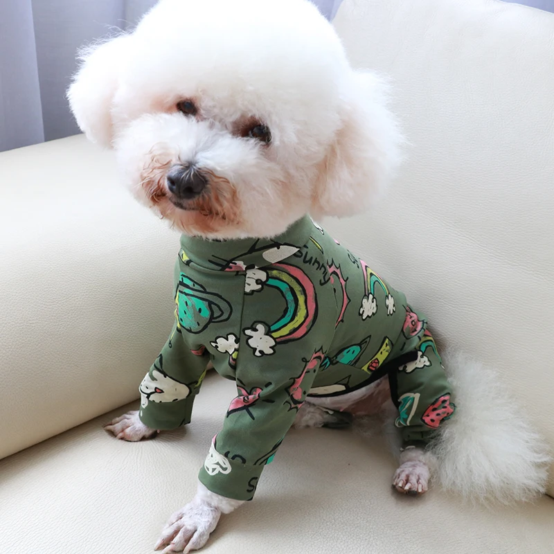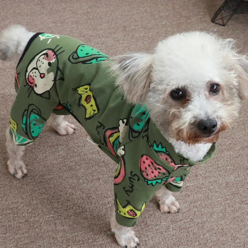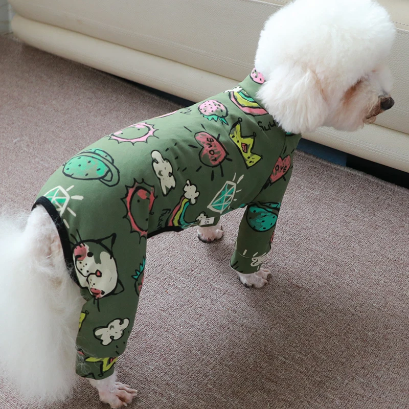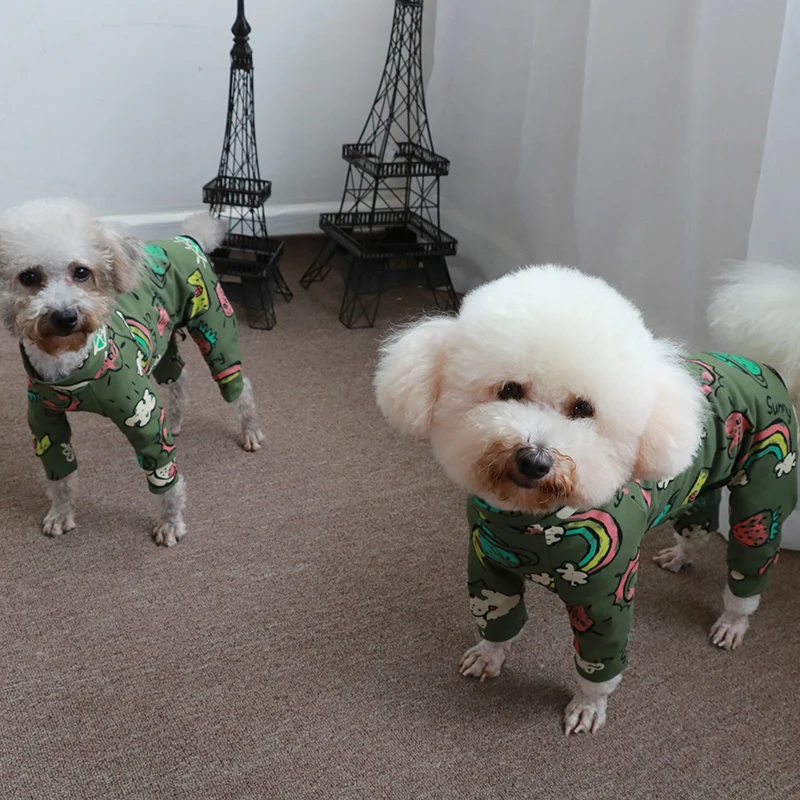 Комбинезон для собаки Тонкая Повседневная Толстовка зеленого цвета с принтом 100% хлопковые штаны на лямках; Спортивный костюм для маленьких собак Стрейчевые пижамы одежда для щенков, чихуахуа, домашняя одежда