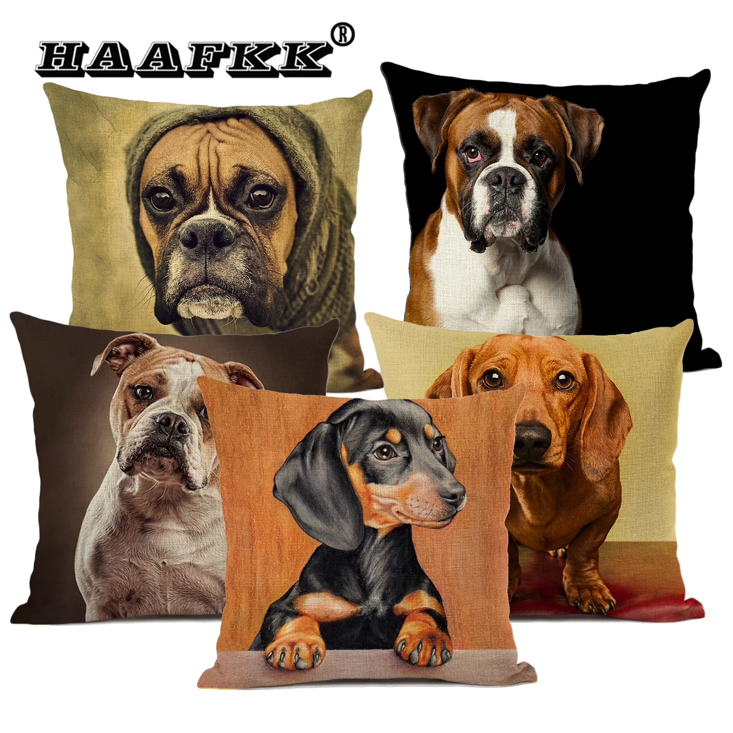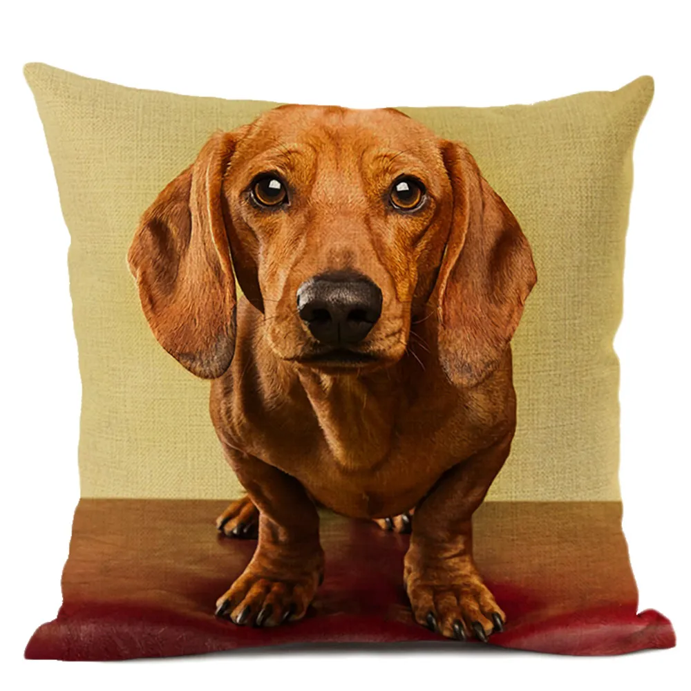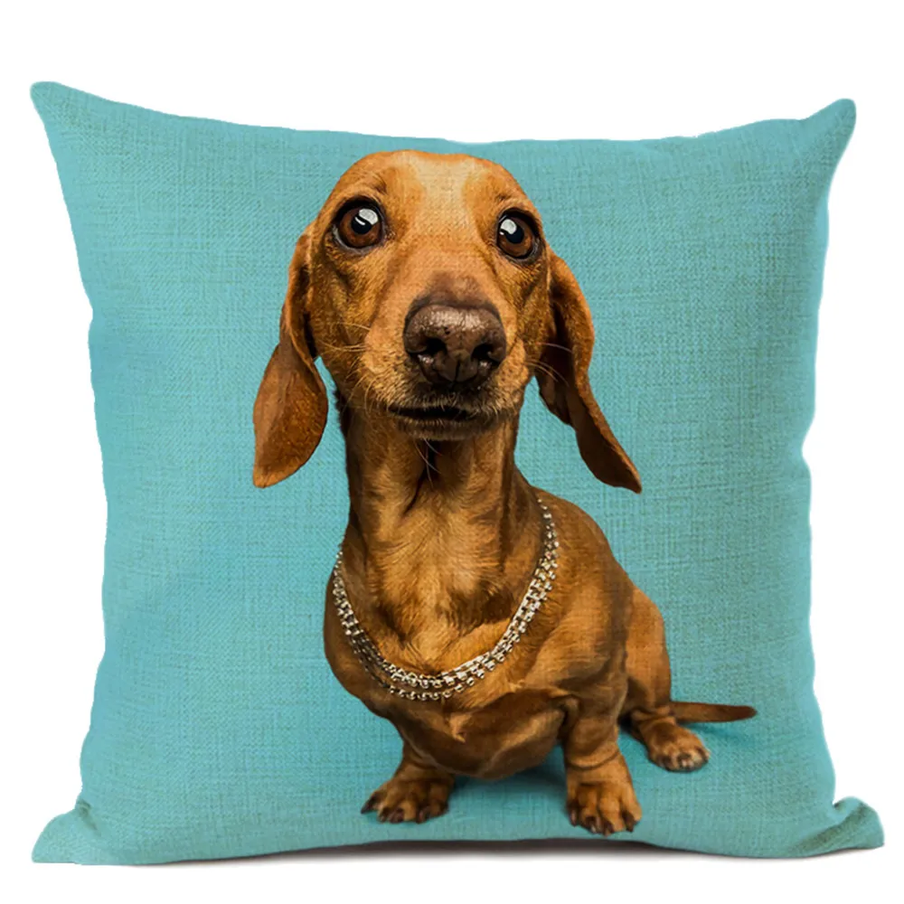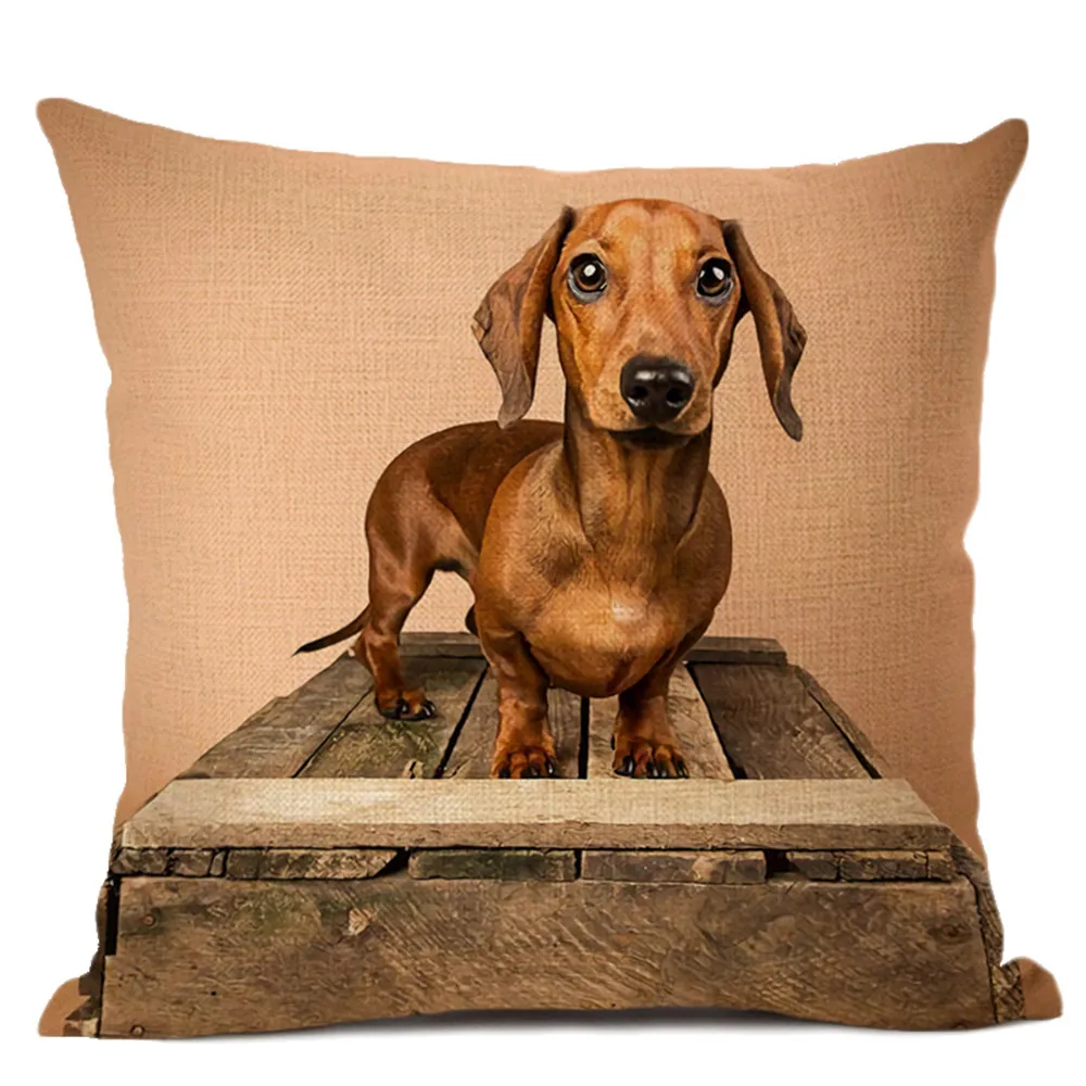 Милая фотография, бульдог, Такса, квадратная льняная Подушка 45*45 см, украшение для дивана в гостиной, собачий спутник