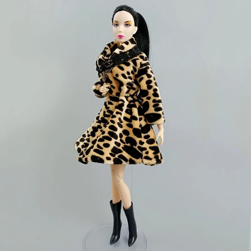 Зимнее меховое пальто с леопардовым принтом для кукол Барби, одежда для шарнирных кукол 16, аксессуары для кукол, пальто, куртка, игрушки для детей, подарок сделай сам