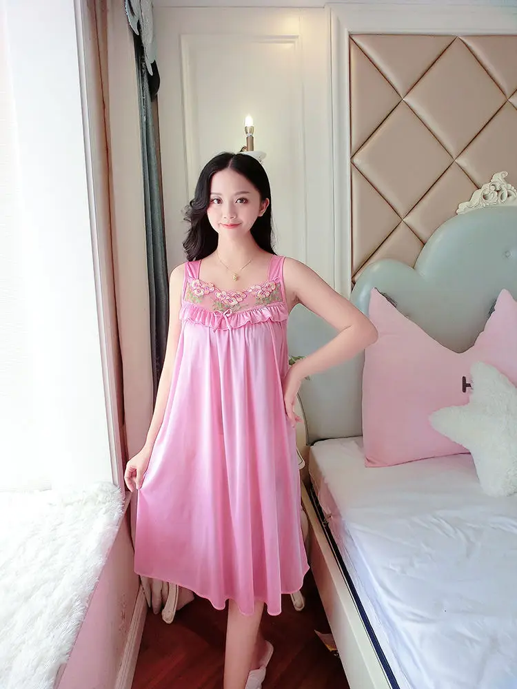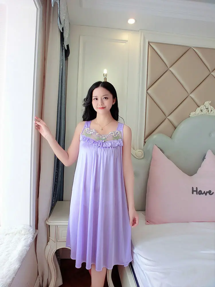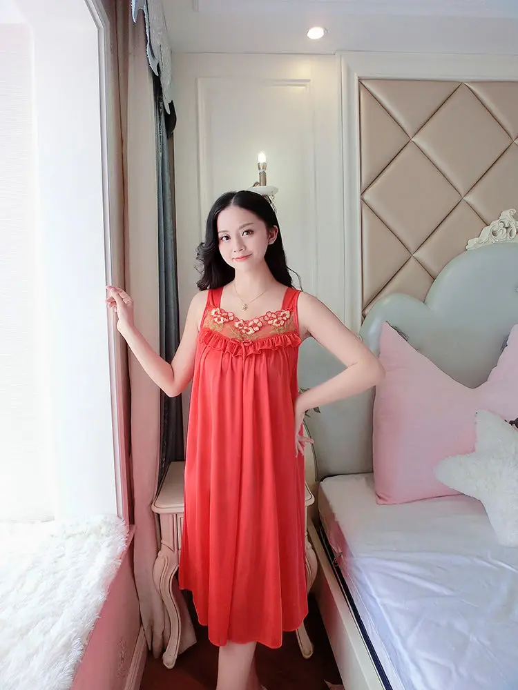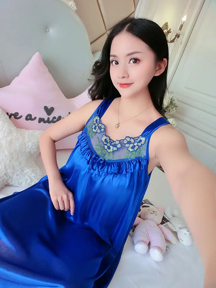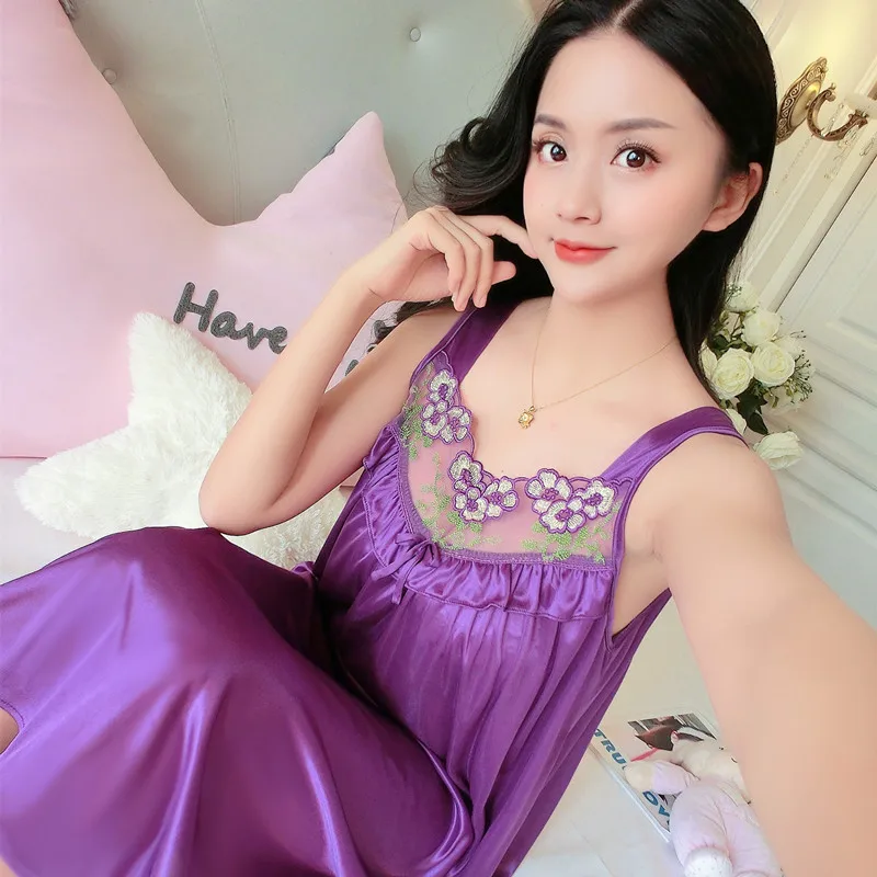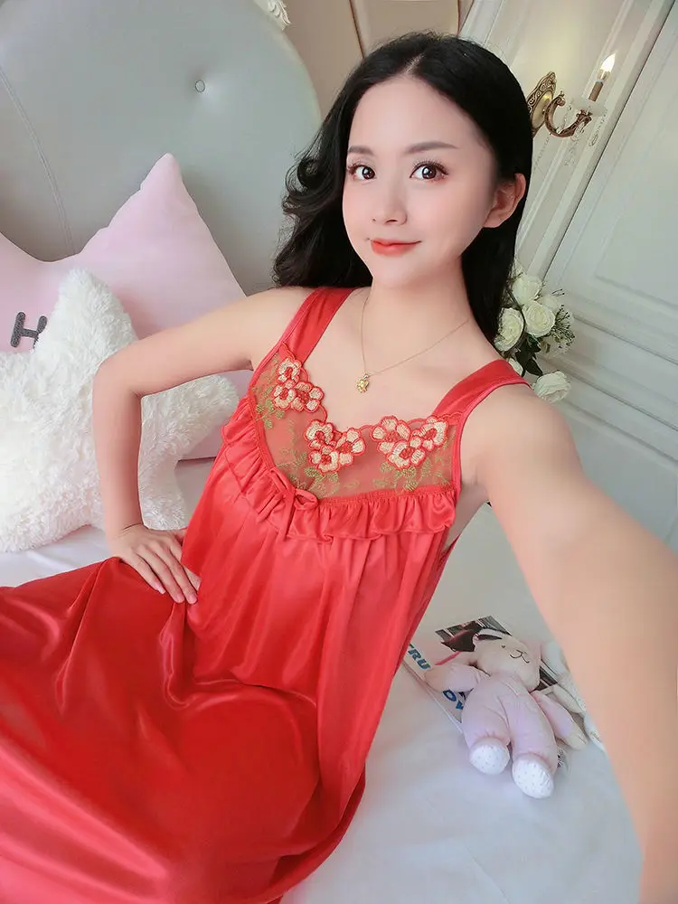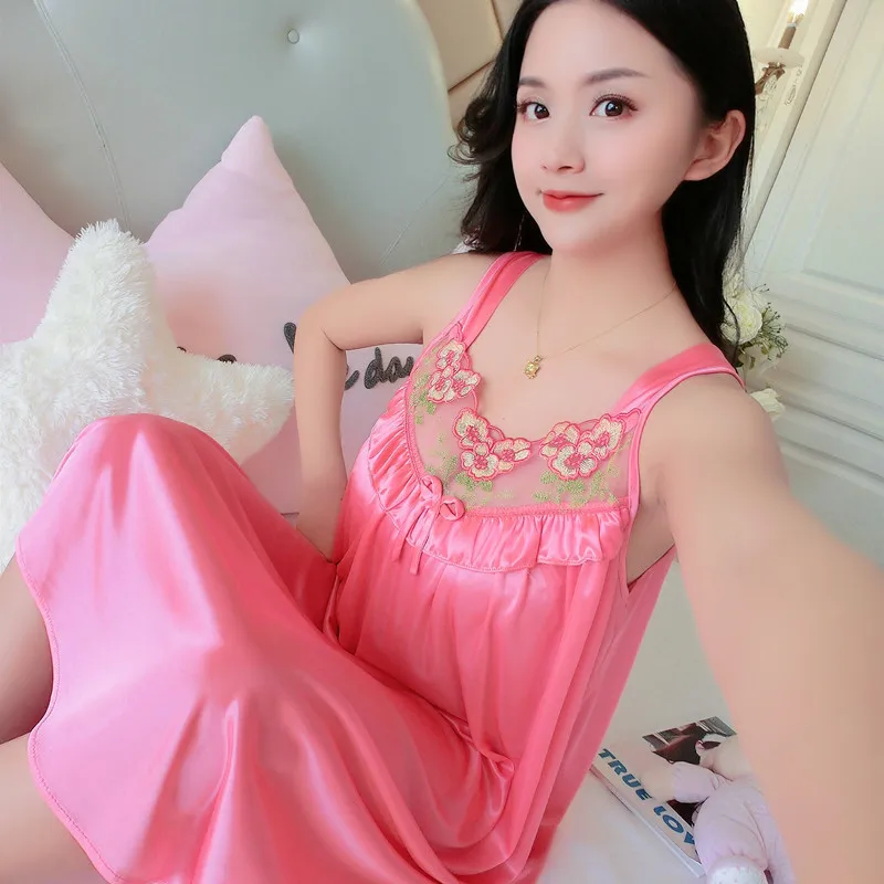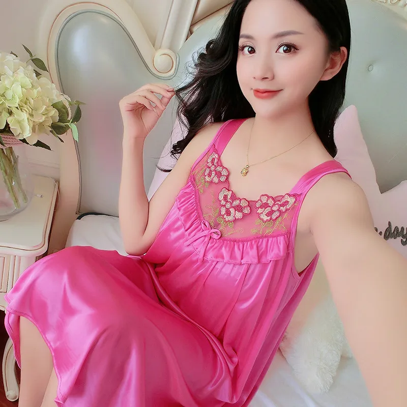 Ночная сорочка женская, размера плюс, шелк, Сексуальное белье