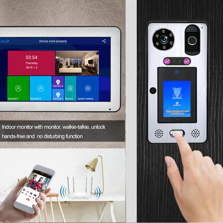 Внутренний монитор использует многоточечный емкостной сенсорный экран, адаптирован к системе Android, устойчивый и простой в эксплуатации. 10 дюймов высокой четкости цифровой ЖК-дисплей монитор, с фотографией, посетителем записи и функцией календаря.