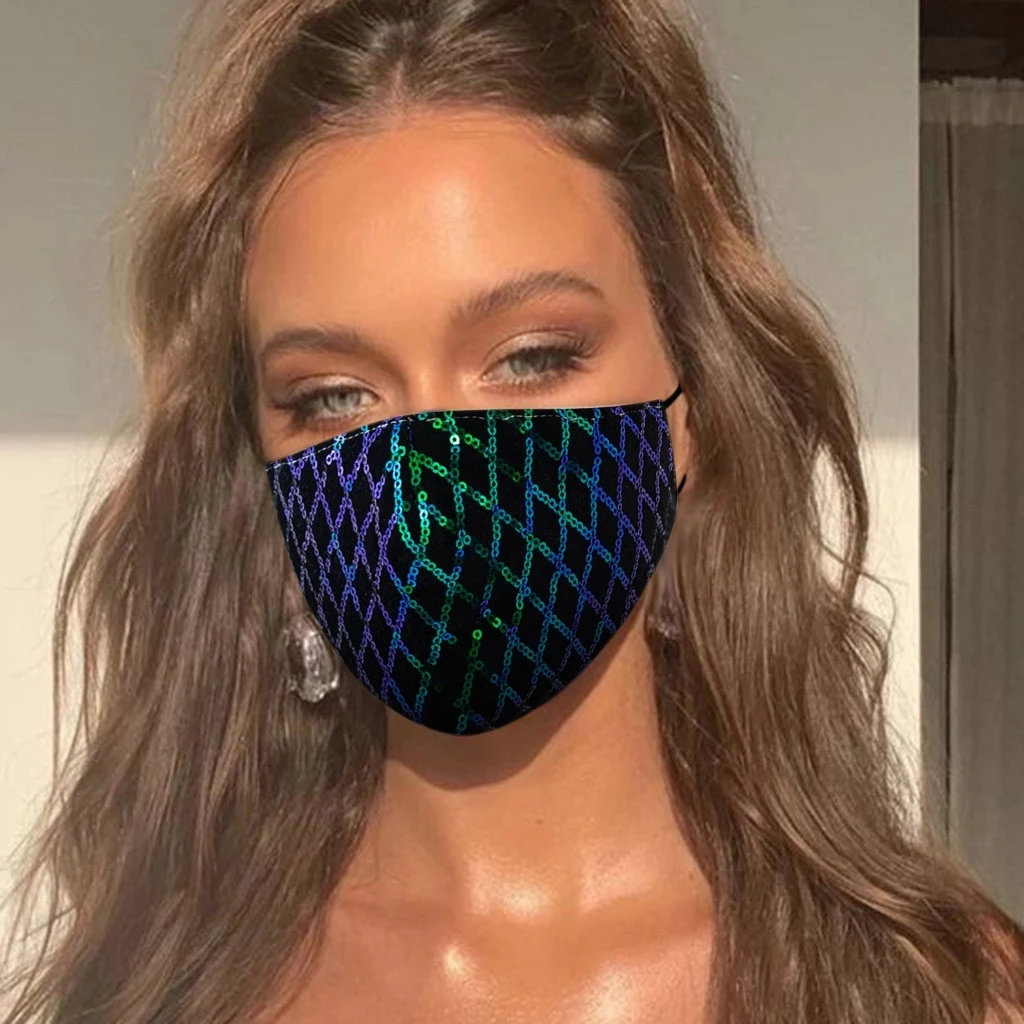 Женская Тканевая маска для лица с пайетками, моющаяся, регулируемая, Пылезащитная, дышащая, многоразовая, защитная маска для лица, быстрая доставка