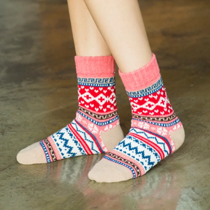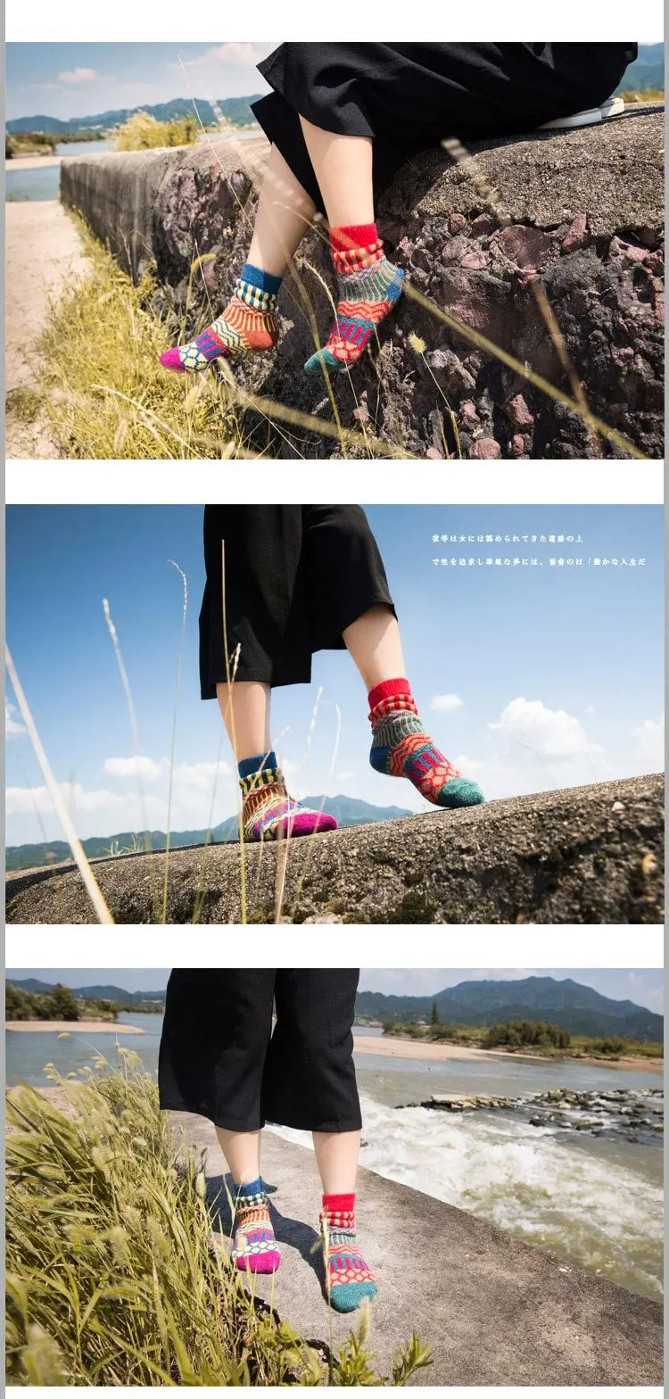Instime 5 паркомпл. в этническом стиле Стиль женские носки из шерсти зимняя теплая нескользящих носочков для женщин, рождественский подарок