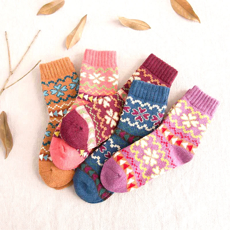 Носки женские в этническом стиле, утепленные, средней длины, 5 пар