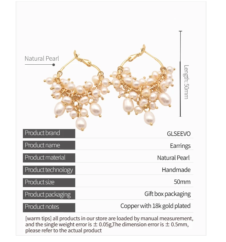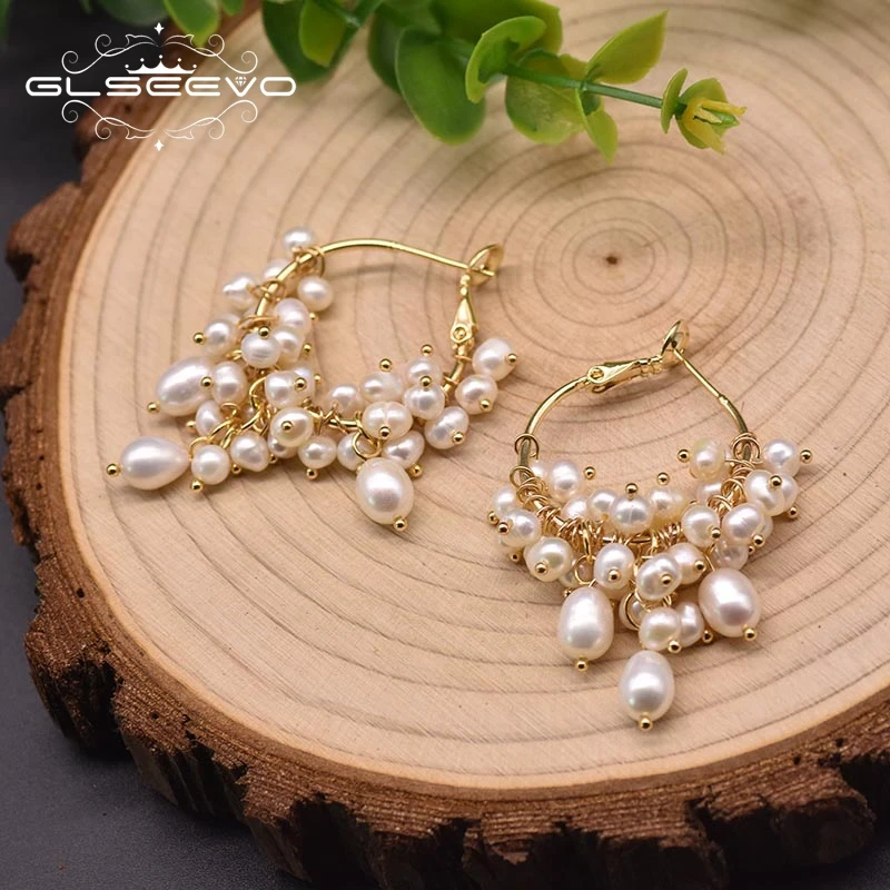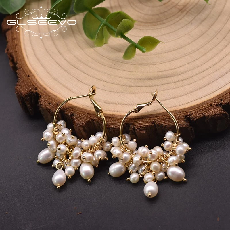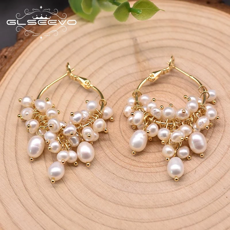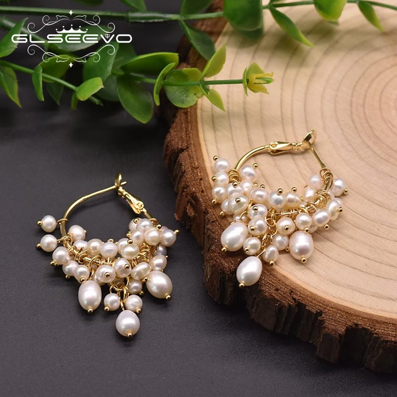 Серьги-кольца GLSEEVO GE0993A женские, Изящные Ювелирные Украшения ручной работы с натуральным пресноводным жемчугом, оригинальный дизайн, для свадьбы