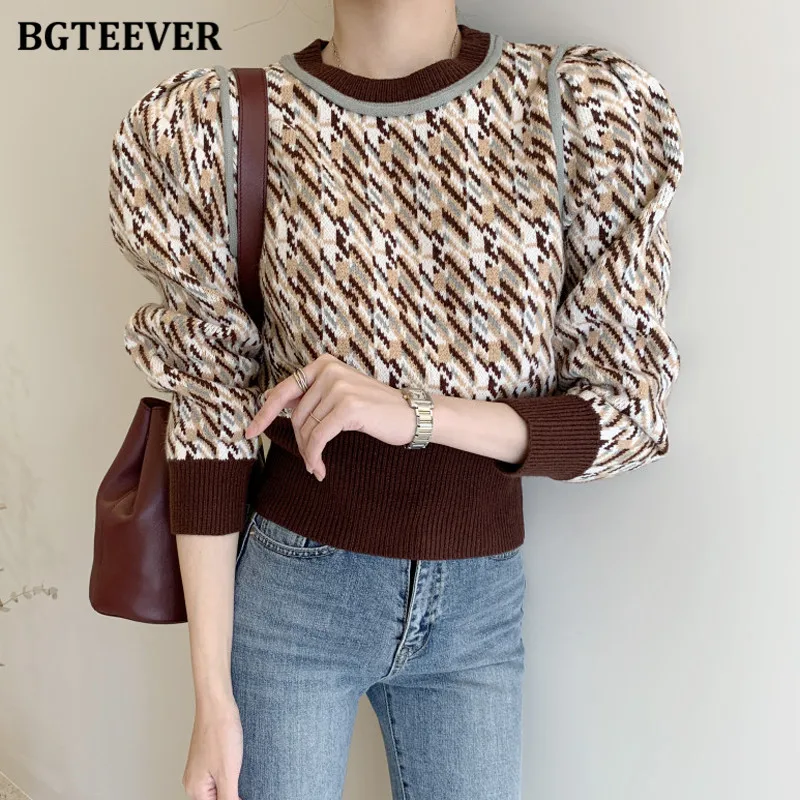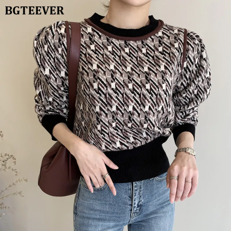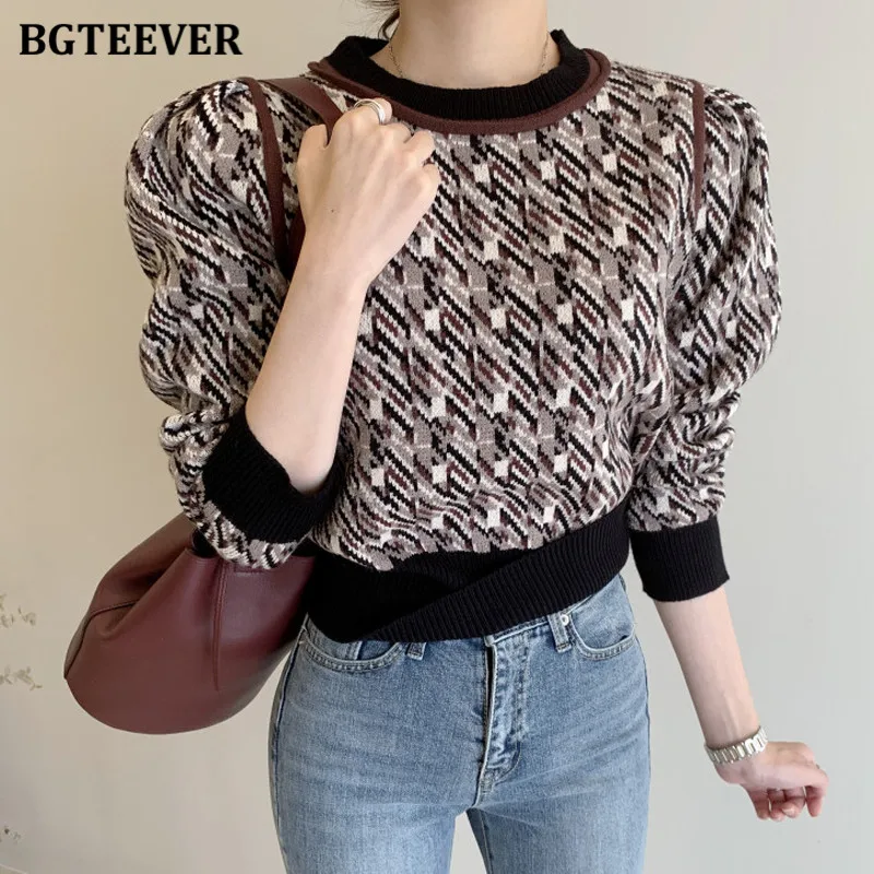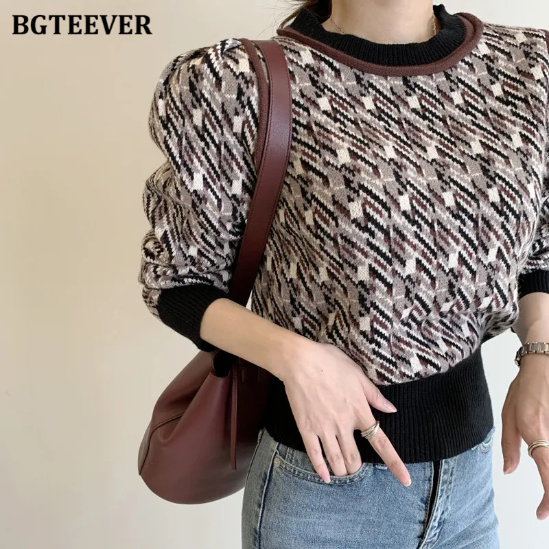 Женский трикотажный свитер BGTEEVER, мягкий теплый Свободный пуловер с длинным рукавом и круглым вырезом, в стиле пэчворк, 2020