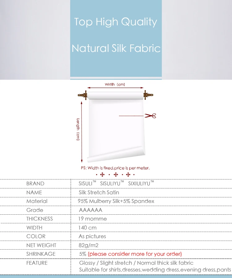 О: Да, это шелковое растягивание, изготовленное из 95% тутового шелка + 5% спандекса, и даже 5% спандекса скручено шелковой нитью. Таким образом, оно по-прежнему относится к диапазону чистого шелка. Мы являемся официальной компанией, расположенной в китайском шелковом городе, и мы ориентируемся только на натуральный шелк.