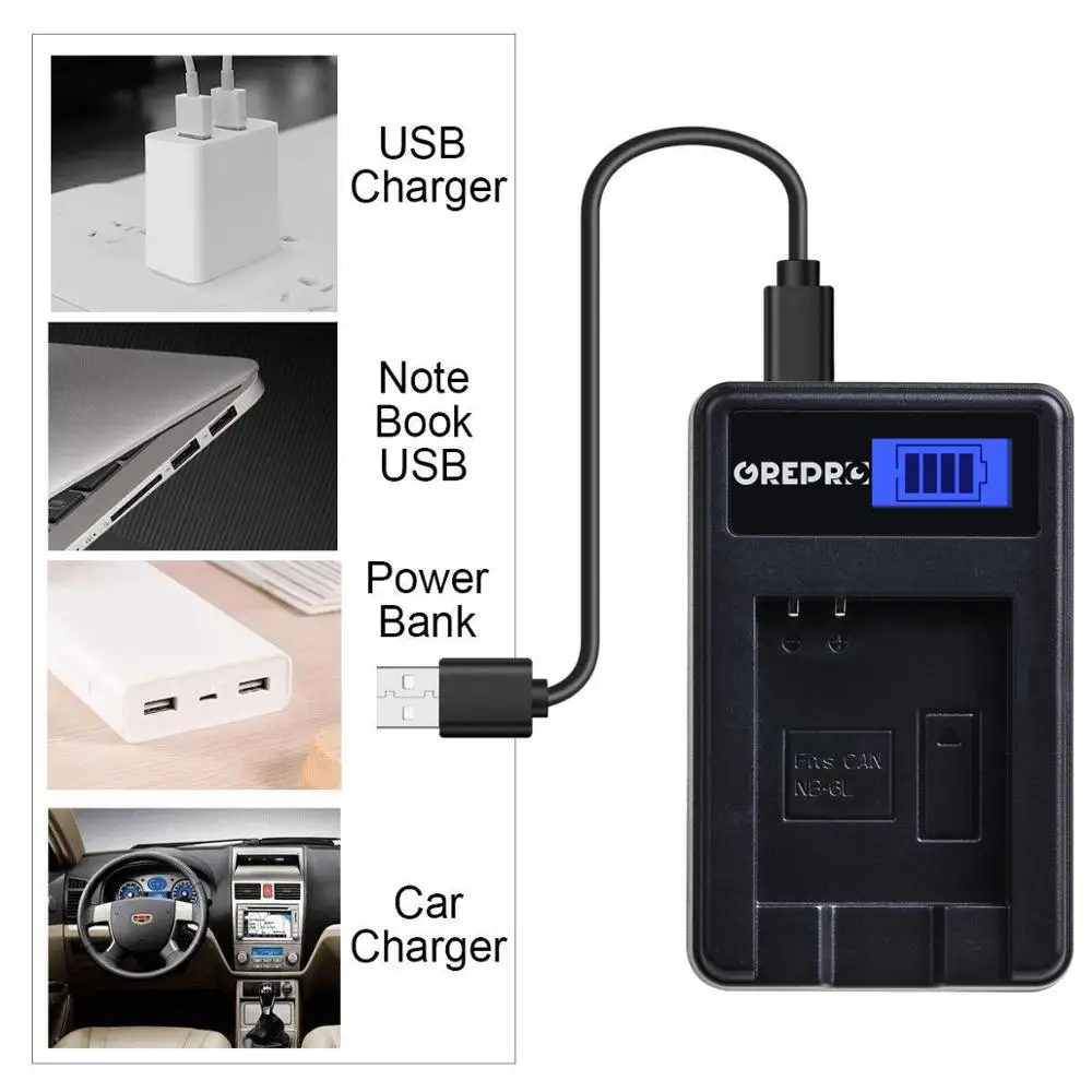 Аккумулятор 1300 мА ч, NB-6L, NB-6LH, NB, 6L, зарядное устройство USB с ЖК-дисплеем для Canon 105IS, 200IS, 210IS, 300HS, 310HS, 85IS, 95IS, S90, S95, SX240HS, SX260HS