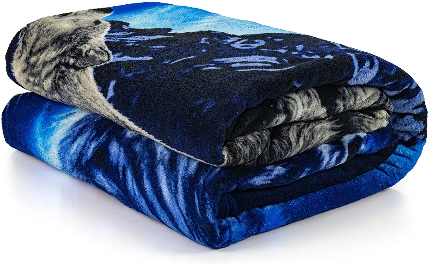 Фланелевое Флисовое одеяло с принтом серого волка, одеяло с Луной и...