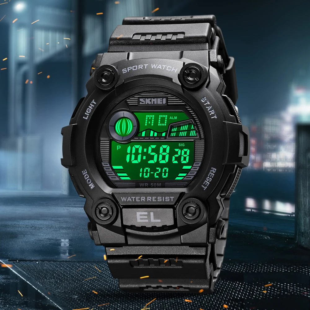 Часы наручные SKMEI Молодежные цифровые для мужчин и женщин, ударопрочные водонепроницаемые спортивные со светодиодной подсветкой и будильником для пар