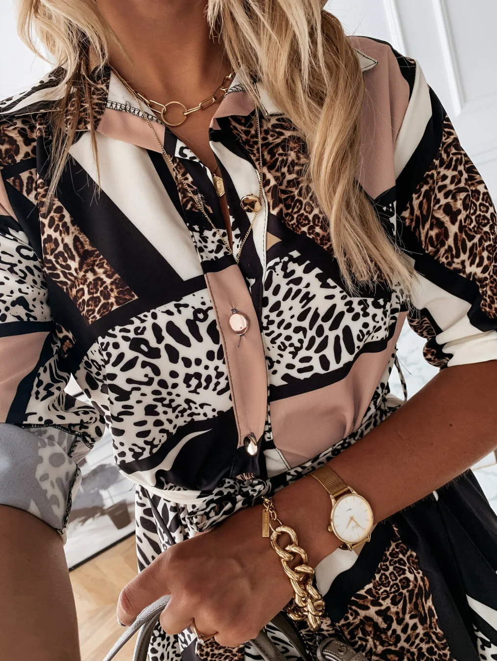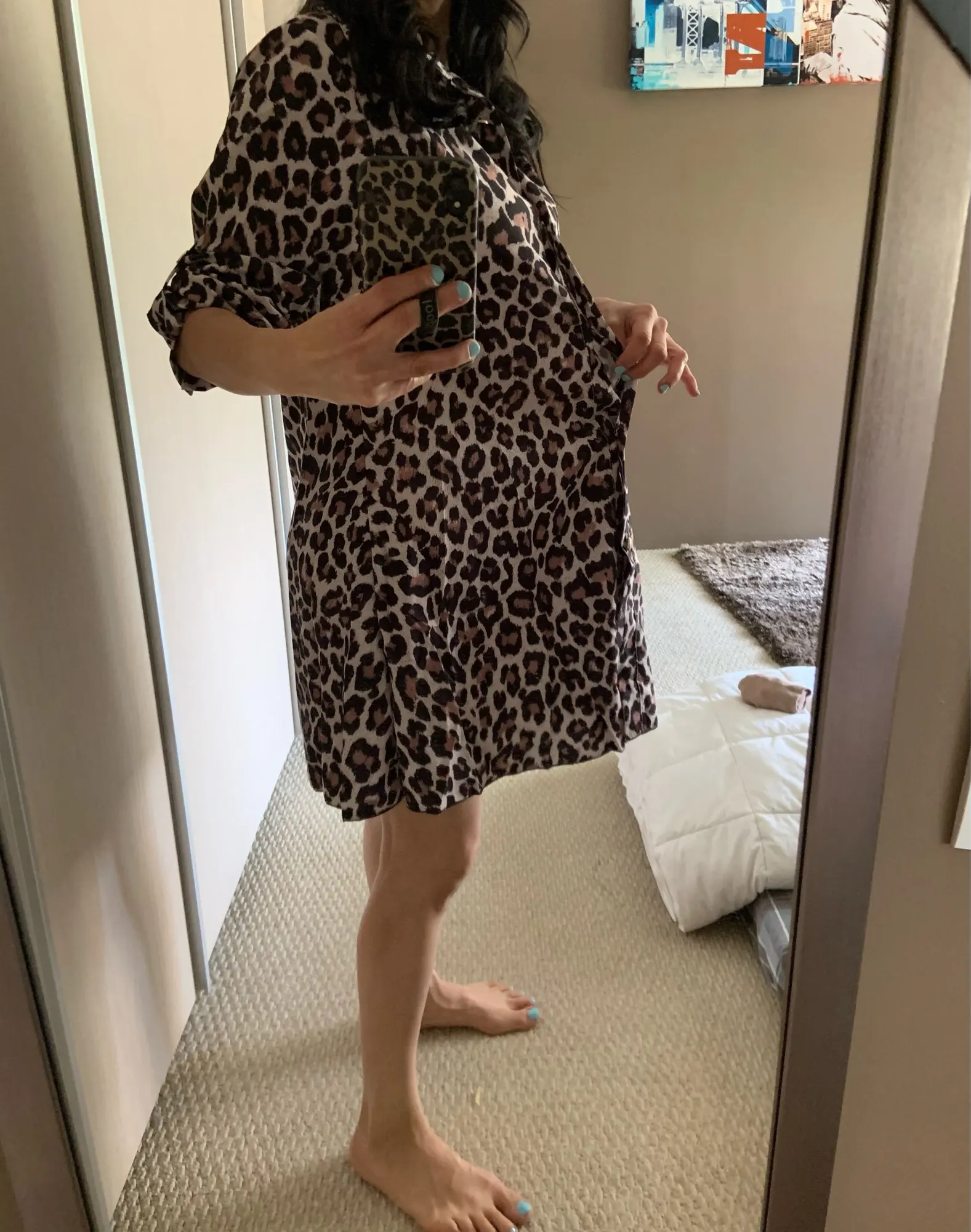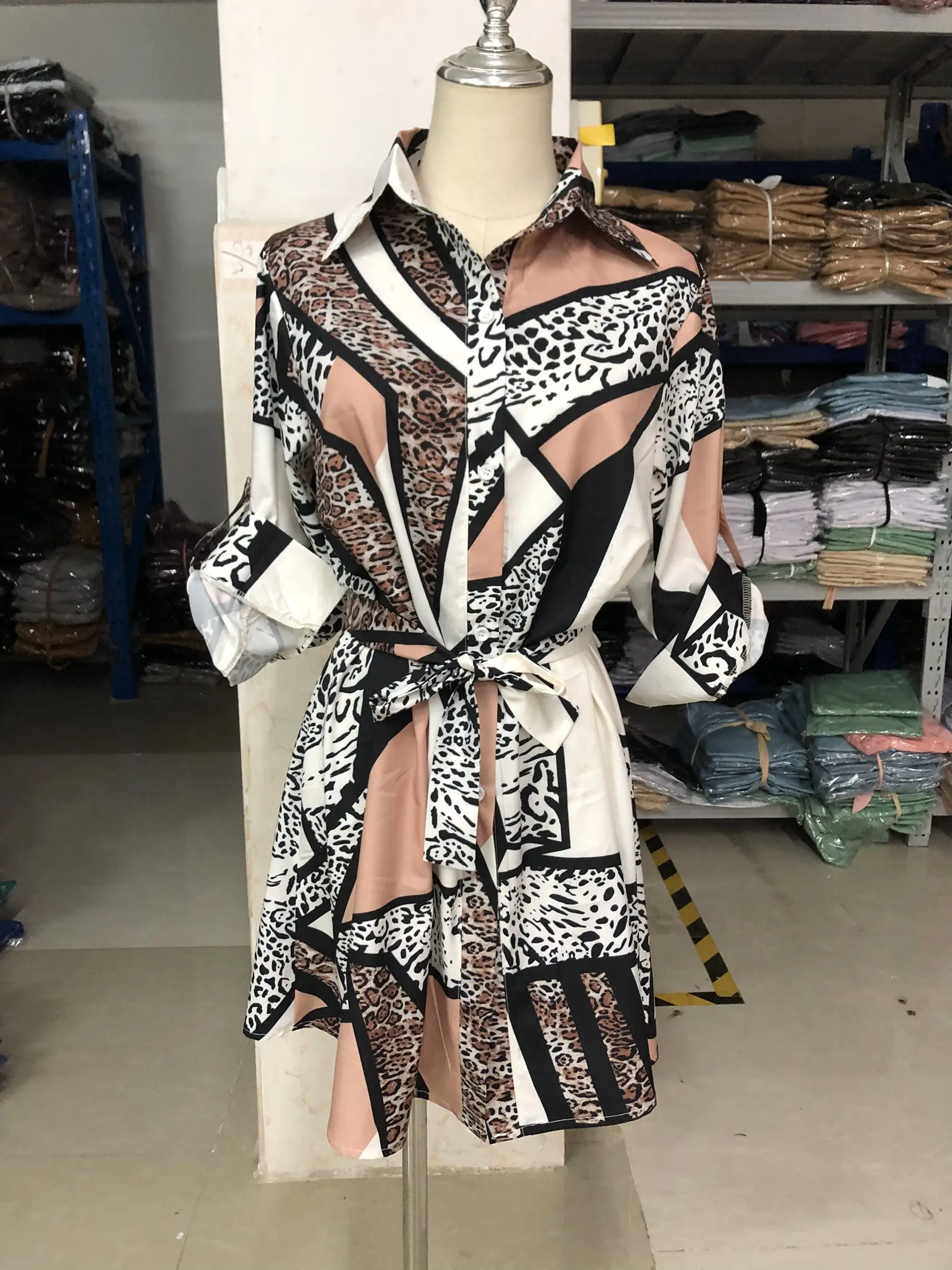 Женское Плиссированное Платье-рубашка на пуговицах, с принтом животных
