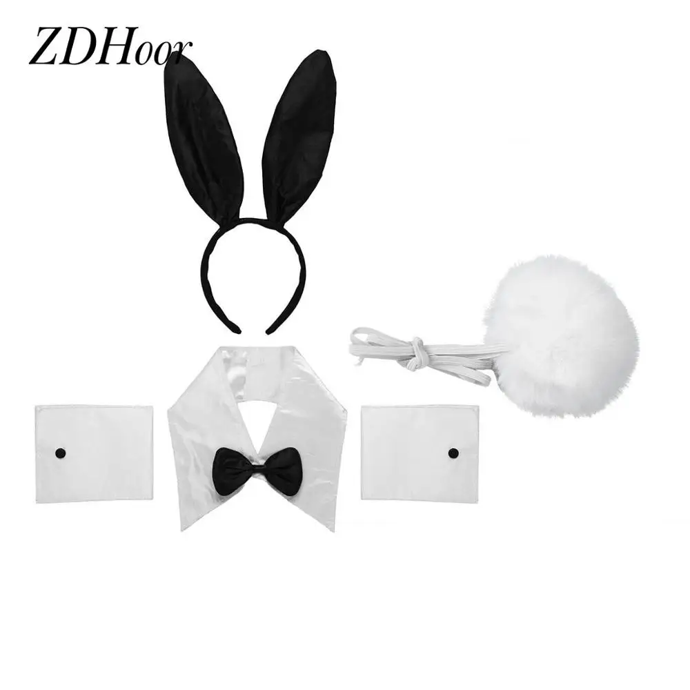 Женский Соблазнительный комплект нижнего белья для косплея, Клубная одежда, аниме, костюм кролика для ролевых игр, повязка на голову с непослушными кроличьими ушами и наряд с хвостом животного