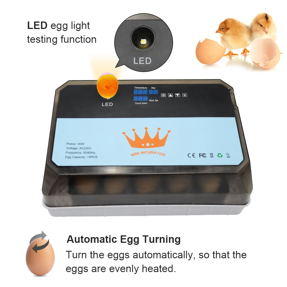 Инкубатор для инкубаторов, для 15 яиц, автоматический инкубатор для цыплят