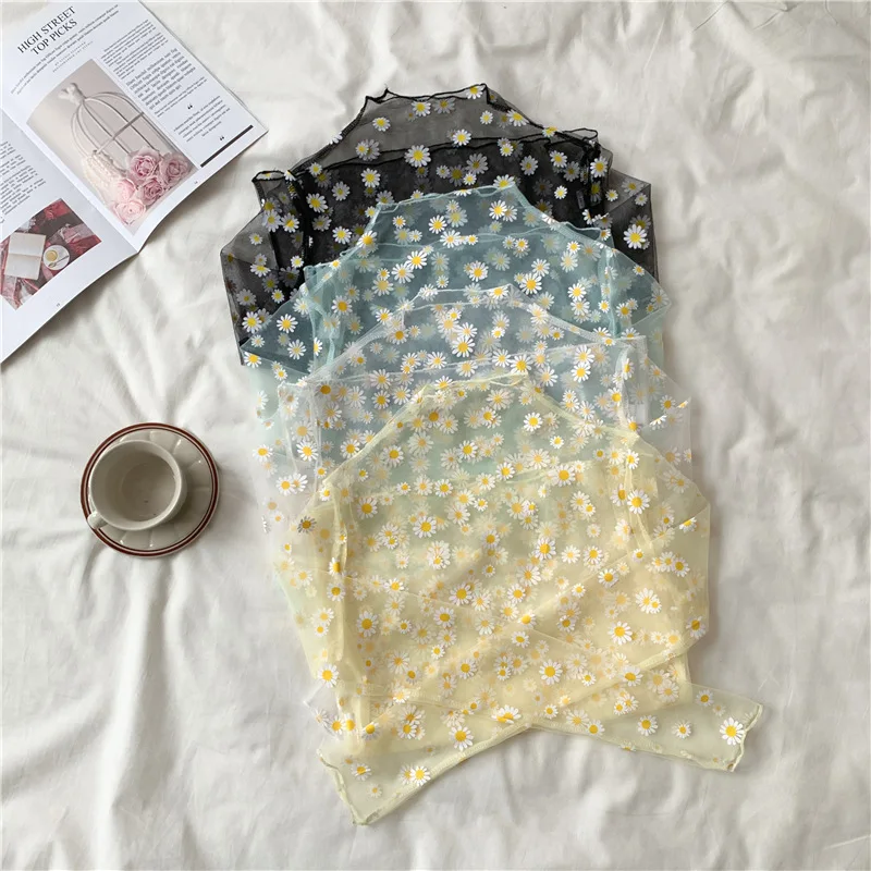Корейский стиль, сетчатый топ с маргариткой, новинка 2020, в стиле ...