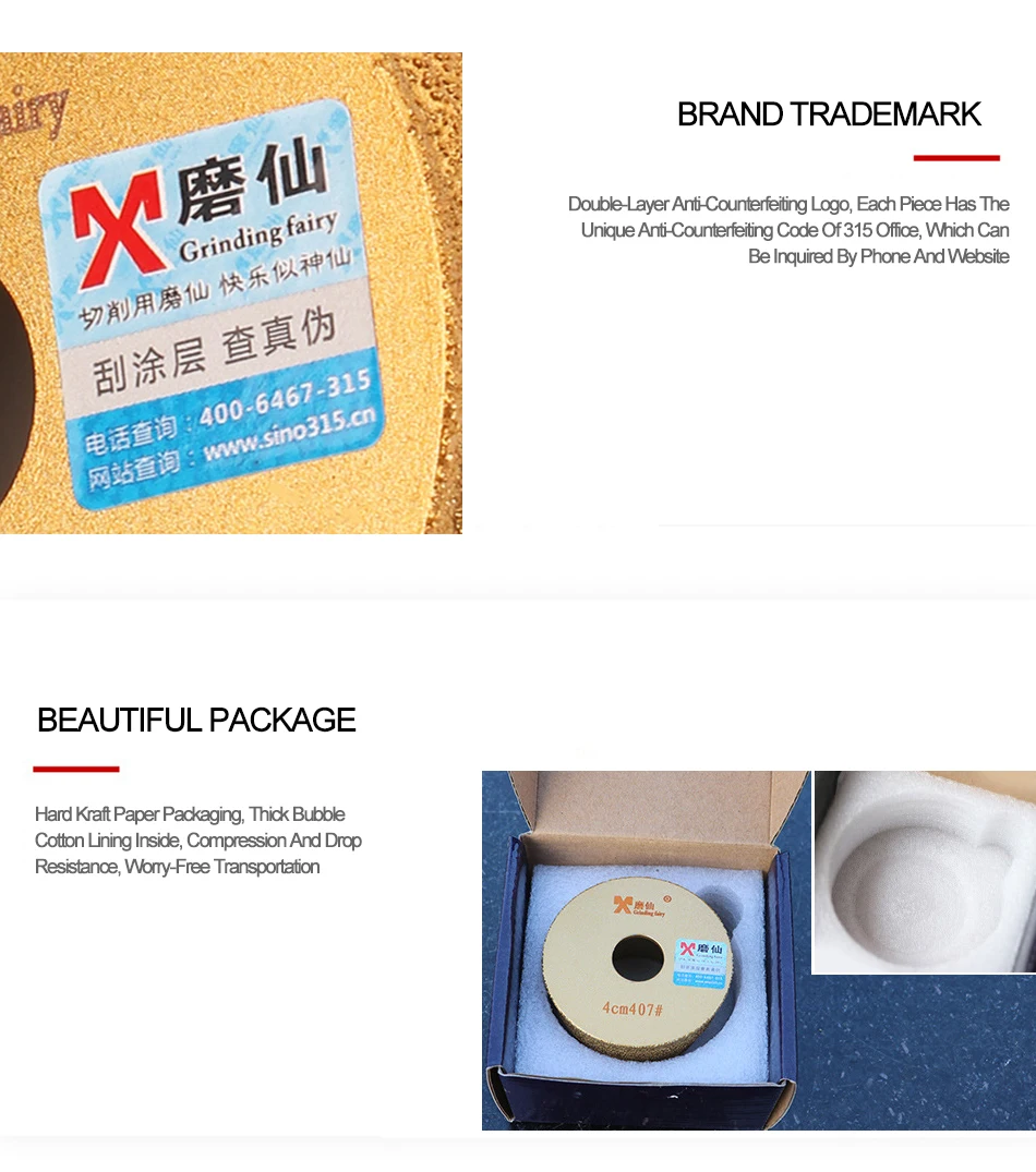 Особенности:1. Высококачественный алмаз2. Полностью автоматическая технология пайки3. Сухая и влажная резка4. Сухое измельчение без ломтиков горения5. Мокрое шлифование является острым и аккуратным6. Стандартная сторона 407 #Спецификация:Размер: 35 мм/40 ммДиаметр: 75 ммВнутреннее отверстие: 20 ммНомер сетки: 46 сеткаМатериал: ЭмериДиапазон использования:Кварцевый камень, мрамор, искусственный камень окантовки, снятия фаски и сглаживанияАдаптационная машина:Угловая шлифовальная машина, электрическая дрельПримечание:1. При установке обратите внимание на нижнюю часть 2 зажимов углового шлифовального станка, которые необходимо перевернуть.2. Ручная Электрическая дрель используется с соединительным стержнем.