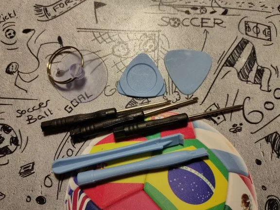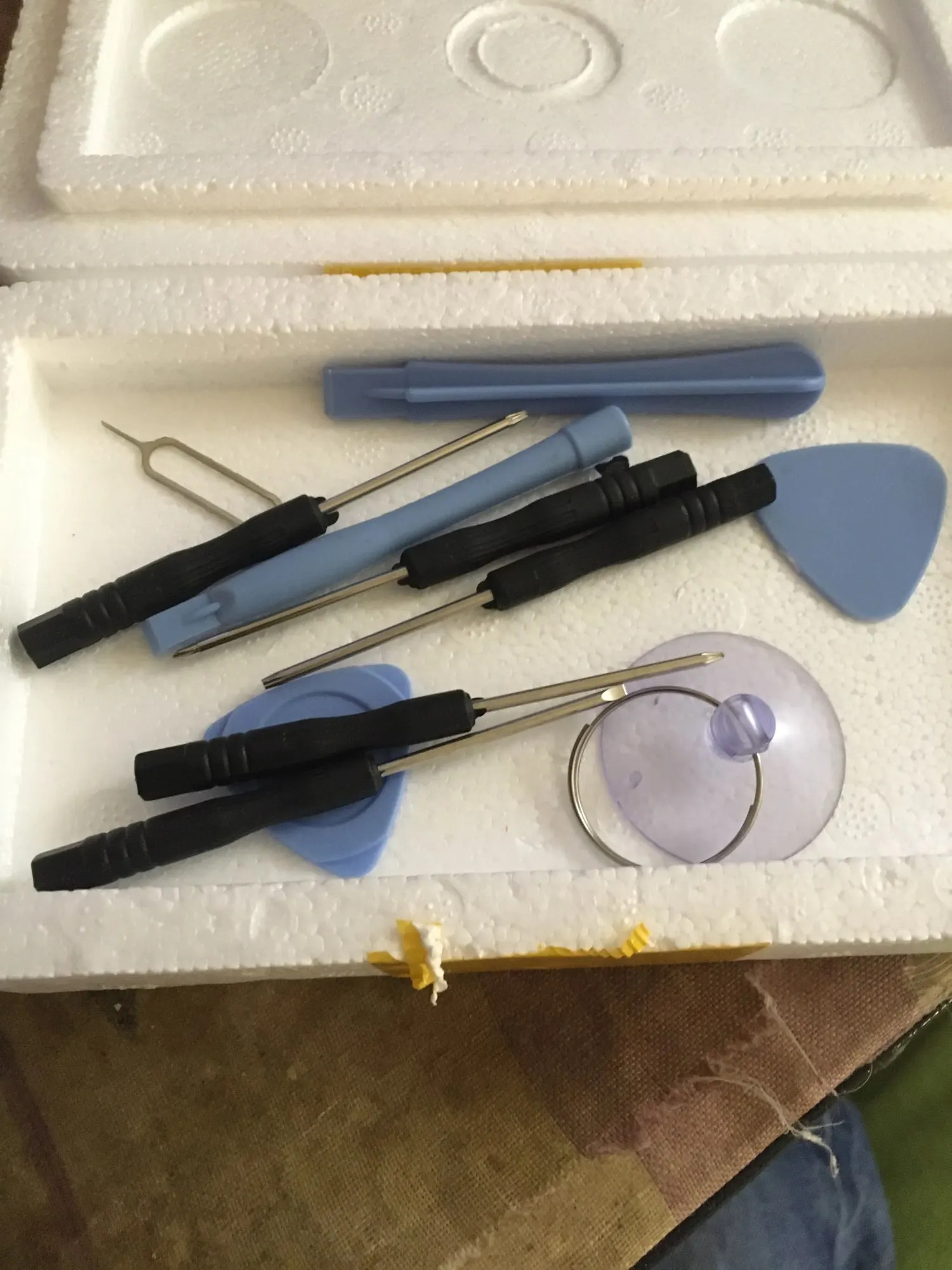 Дошло быстро из-за объединения заказов Али. Отвертки не магнитятся, но крестовая вроде неплохо откручивает. Присоской не пользовался. Синие треугольники вроде норм, но пластик хрупкий - у длинных синих отгибалок (не знаю как они называются) - рабочая поверхность сломалась еще при доставке, а когда я попытался под крышку телефона подлезть - крышка телефона отрезала рабочие области инструмента.