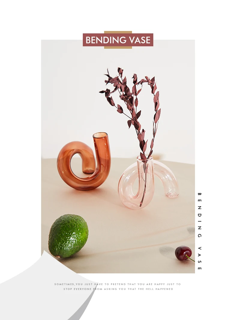 Гибочная ваза для цветов, стеклянные украшения, столовая, гостиная, скандинавский стол, фотоподсвечник