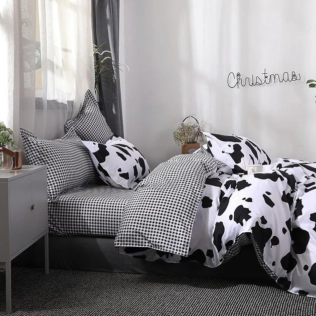 Корова черный, Белый Цвет Сетка Печать комплект постельного белья 3/4 шт. для взрослых и детей комплект постельного белья набор модное одеяло, покрывало на кровать, простыни наволочки, домашний текстиль