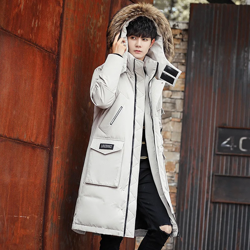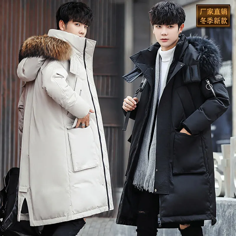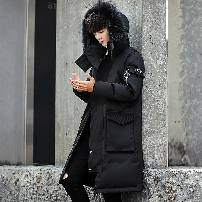 Мужской зимний пуховик с меховым воротником, длинная ветрозащитная куртка с большими карманами, 2021
