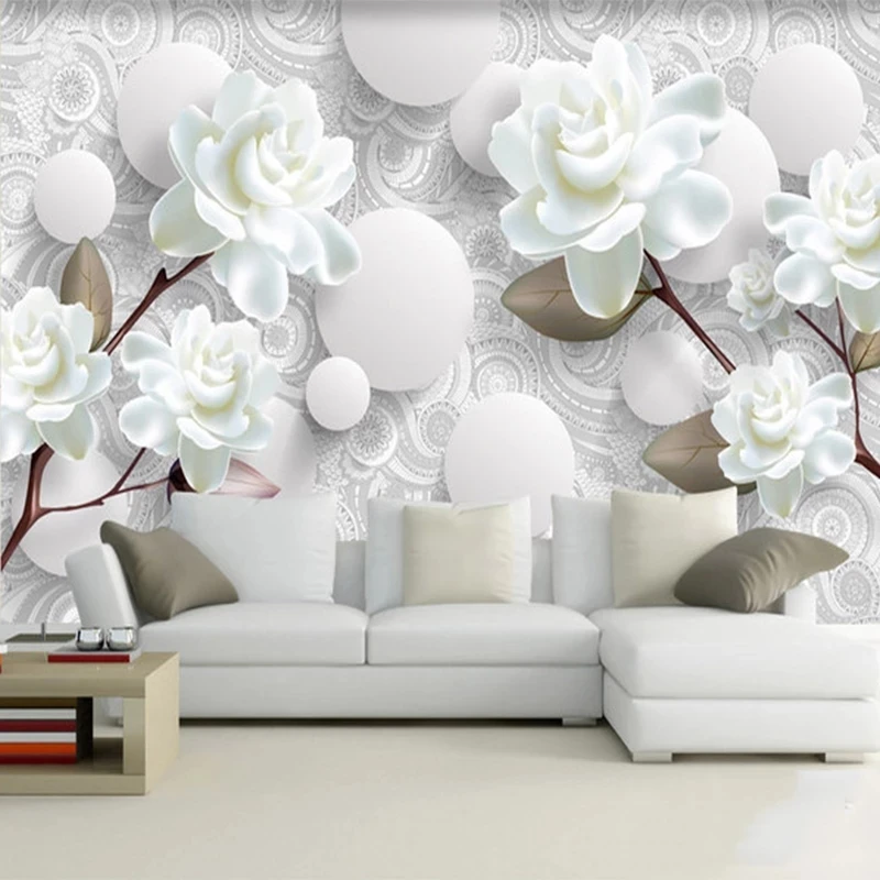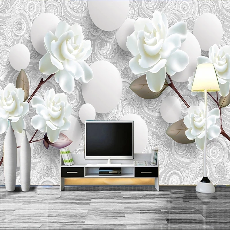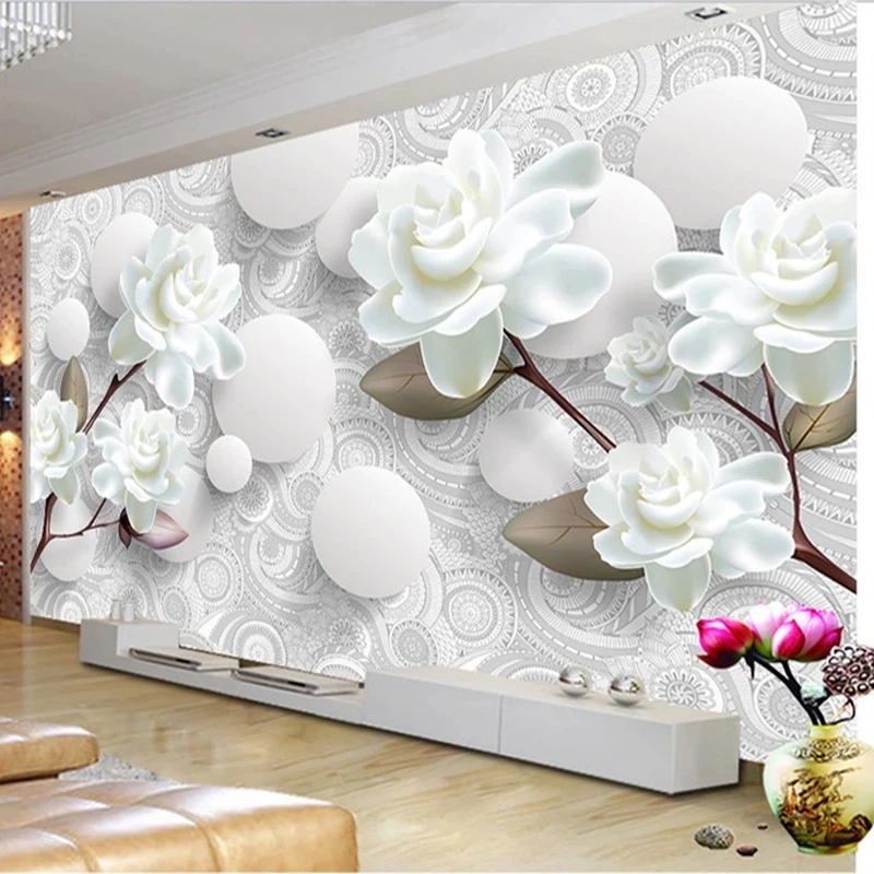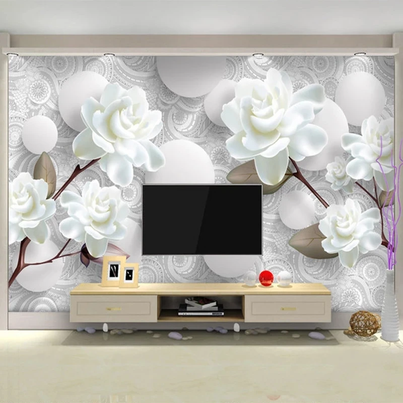 Настенные обои на заказ, Современные Простые 3D стерео обои с белыми пионами, цветами, для гостиной, фона для телевизора, домашний декор, настенная ткань
