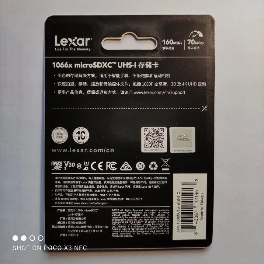Карта памяти Micro SD Lexar, 1066x64 ГБ, 128 ГБ, 256 ГБ, V30, A2, класс 10, SDXC, макс. 160, МБс., для камеры