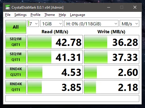 Фактическая скорость измерений далеко от заявленных значений. Максимальное значение от кристаллического знака 8.0.1 x64 (UWP) Чтение МБ/с. Запись МБ/с. Подумайте, соответствует ли цена фактическому качеству поставляемых товаров.