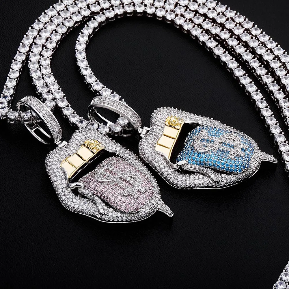 TOPGRILLZ Новое высококачественное медное ожерелье с кубическим цирконием подвеска в форме губ цвета камня с теннисной цепочкой 4 мм