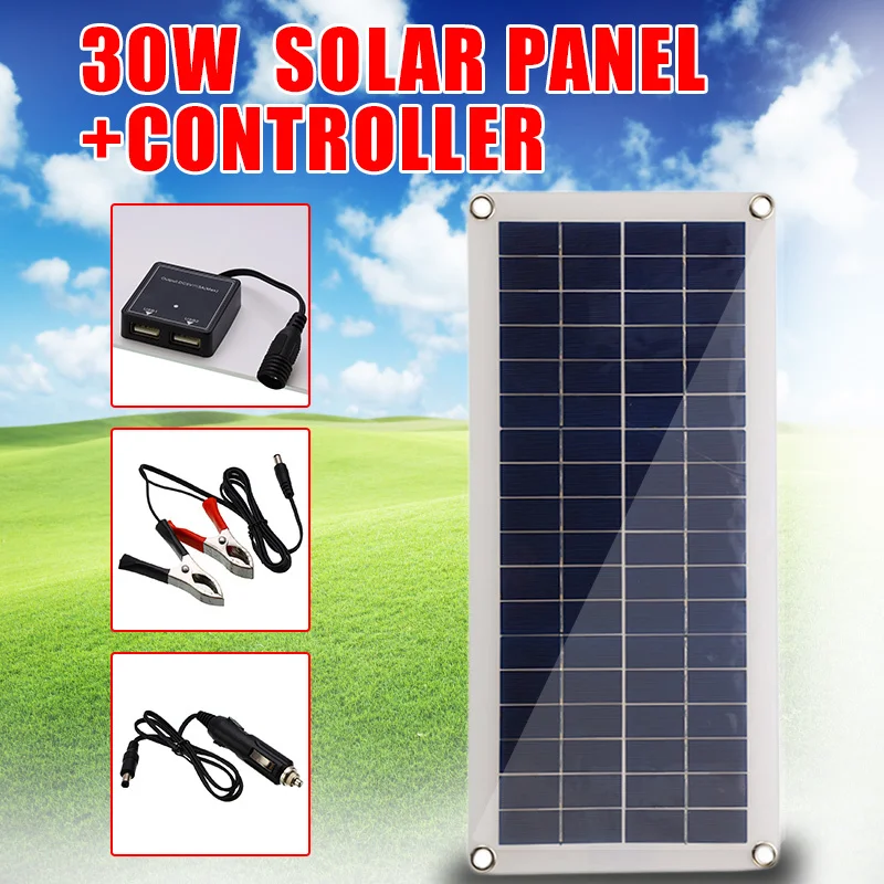 30 Вт Панели солнечные 12V USB Портативный Панели солнечные клетки + 1020 Вт, 30 Вт4050A контроллер для автомобиля яхта RV зарядки Открытый аварийный светильник