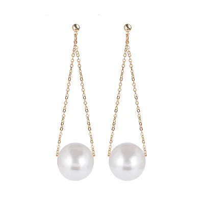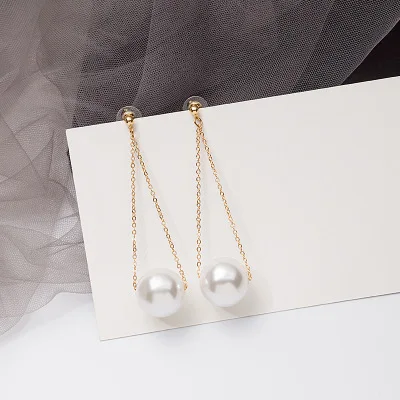 Корейские темпераментные большие жемчужные серьги, длинные металлические серьги-цепочки, серьги