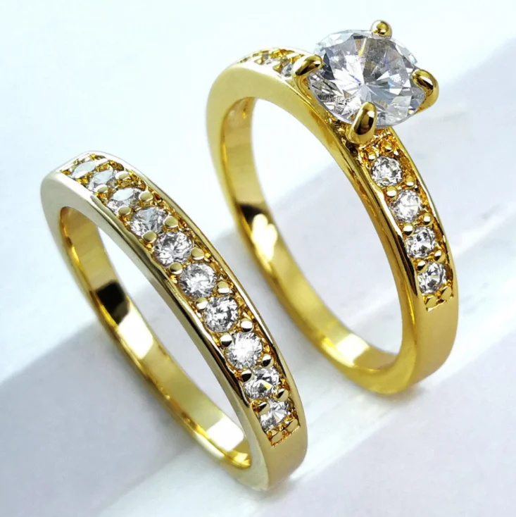Классическое модное роскошное Золотое блестящее обручальное кольцо с полным цирконием для пары в подарок