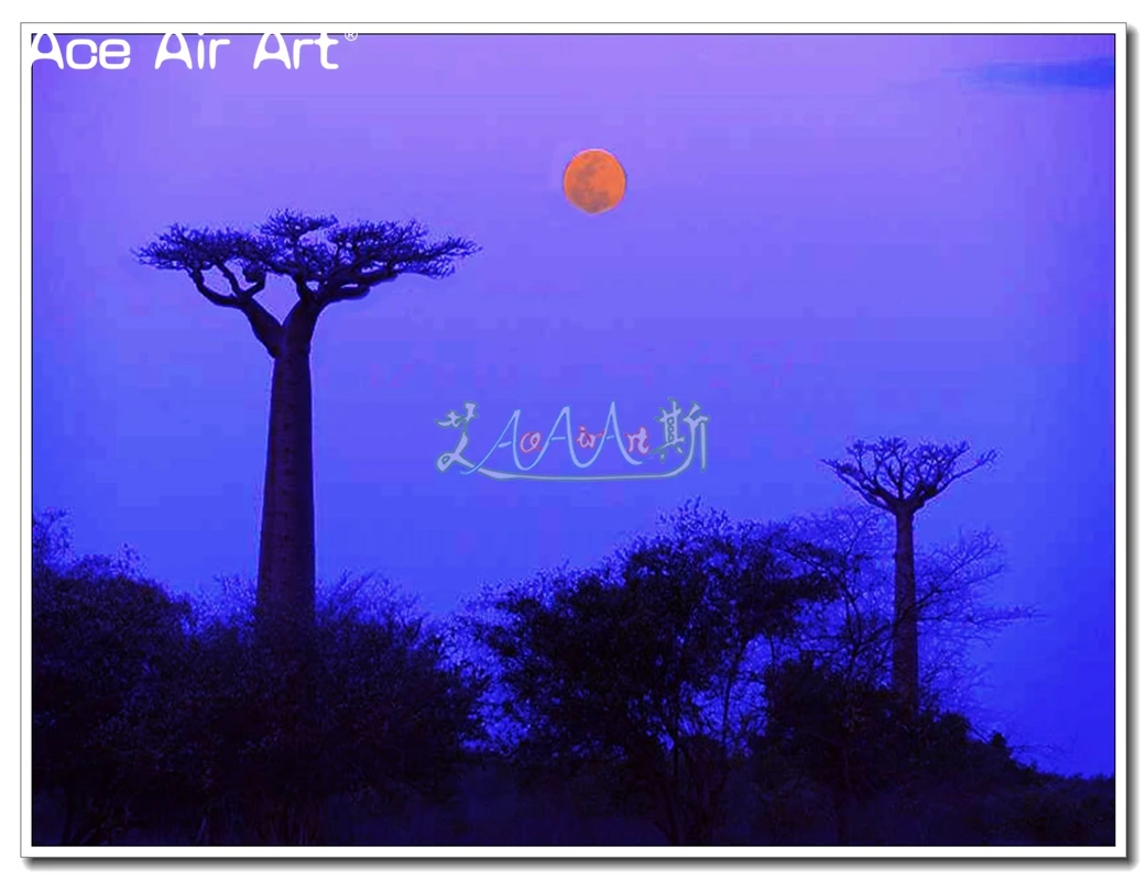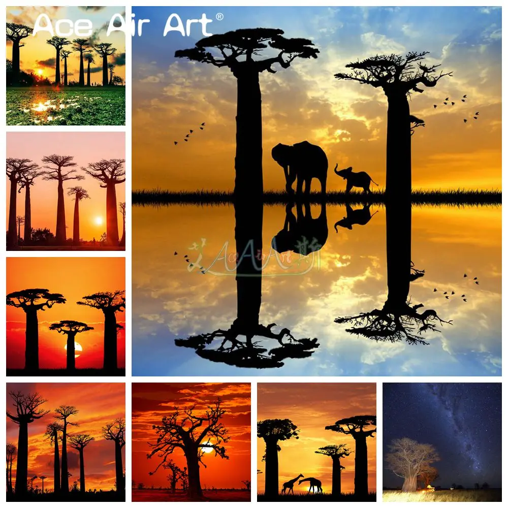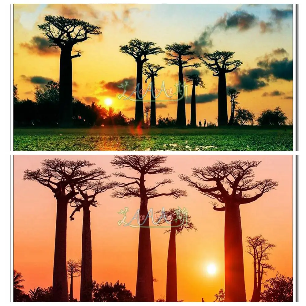 Алмазная картина с известным растением, адансония Digitata Baobab, Африканское дерево с закатомвосходом солнца, светящаяся картина, полностью круглаяквадратная дрель