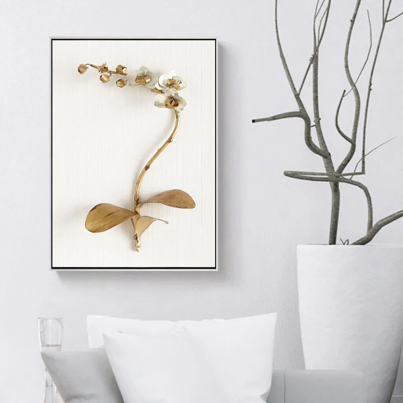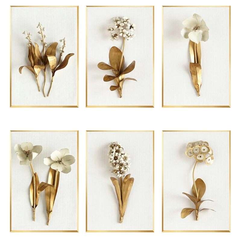 Золотые растения DDHH, листья и цветы, настенная живопись, картина ...