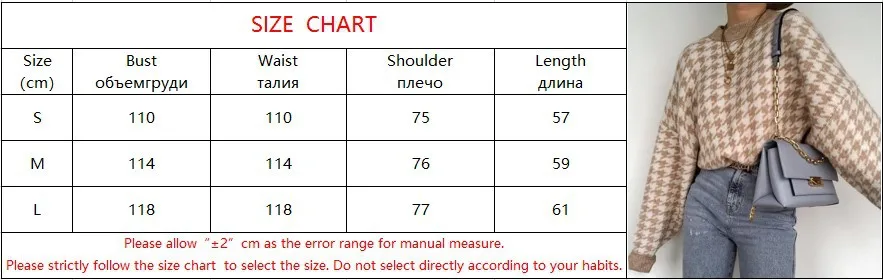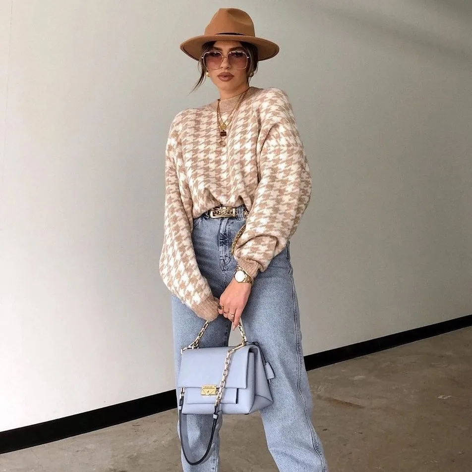 Женский вязаный свитер Atumn, с рисунком гусиная лапка, с длинным р...