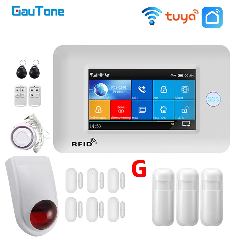 GauTone WiFi GSM сигнализация 433 МГц охранная сигнализация детектор движения Беспроводная Солнечная Сирена TUYA Smart Life APP Control
