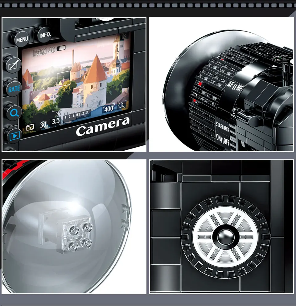 Nice as a showpiece, but a far cry from LEGO quality. The plastic feels thin and looses its shine the moment you touch it. Also, due to tolerances not being quite there, one of the buttons comes off incredibly easily. Also the crank doesn't turn (as suggested by pictures), but is affixed as non-movable part. Note that these blocks are not LEGO compatible and are much smaller in size. Nonetheless, considering its price, the camera is still a good buy if all you want is use it for display purpose only.