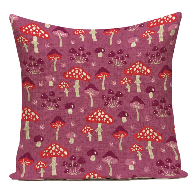 Декоративный чехол для подушки, наволочка с изображением грибов, Ли...