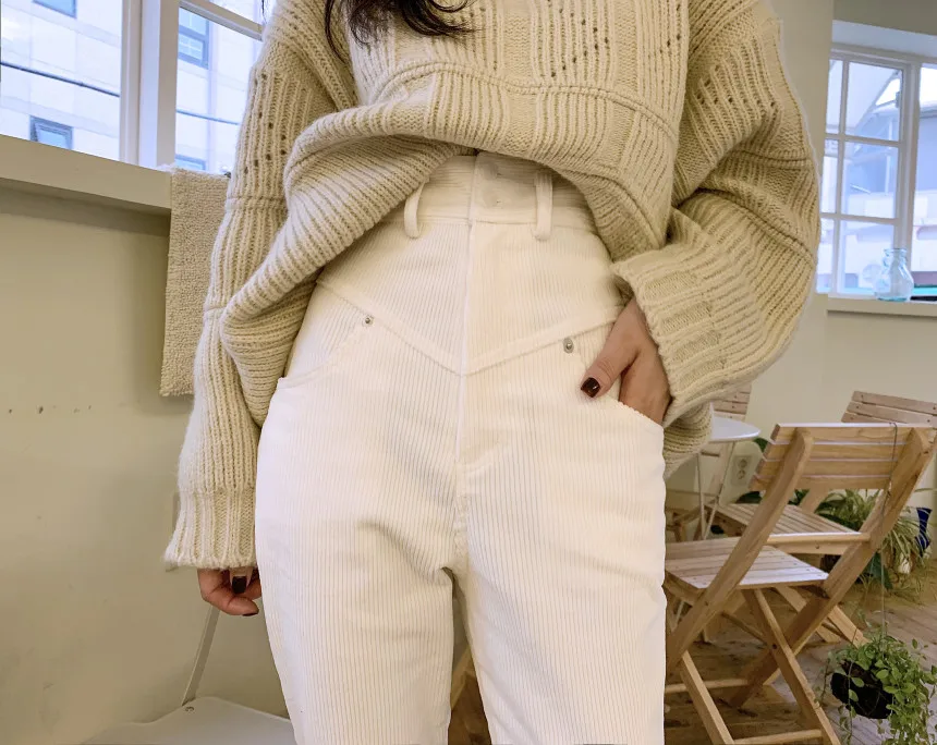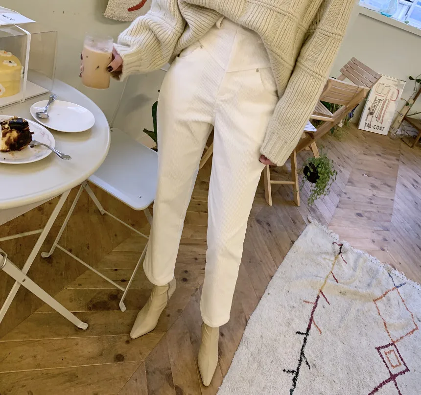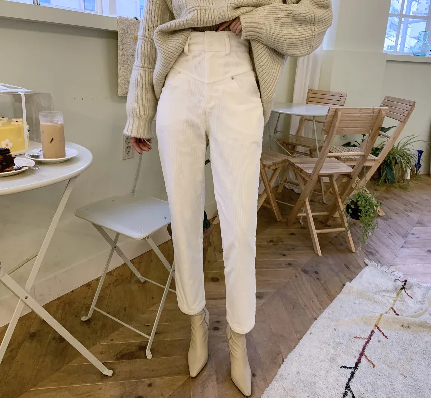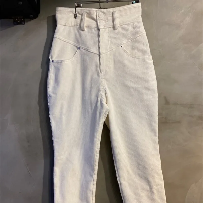 Элегантные Формальные вельветовые шаровары HziriP с высокой талией, женские белые брюки, новые офисные однотонные винтажные модные Костюмные брюки для женщин