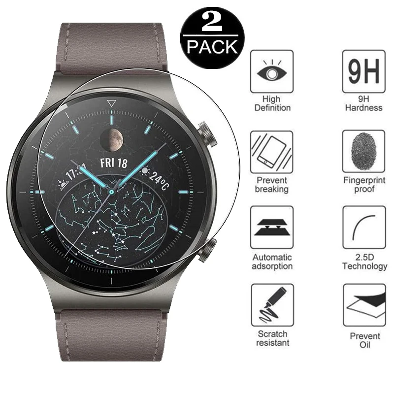 2 упаковки для Huawei Watch GT 2 Pro, закаленное стекло для защиты экрана умных часов от царапин, защитная стеклянная пленка