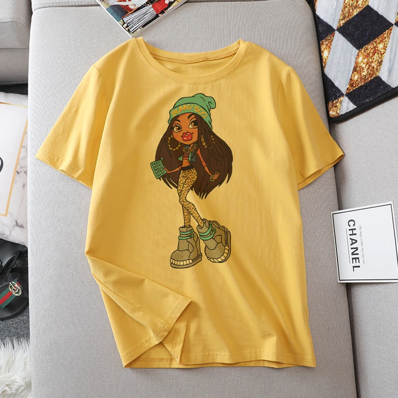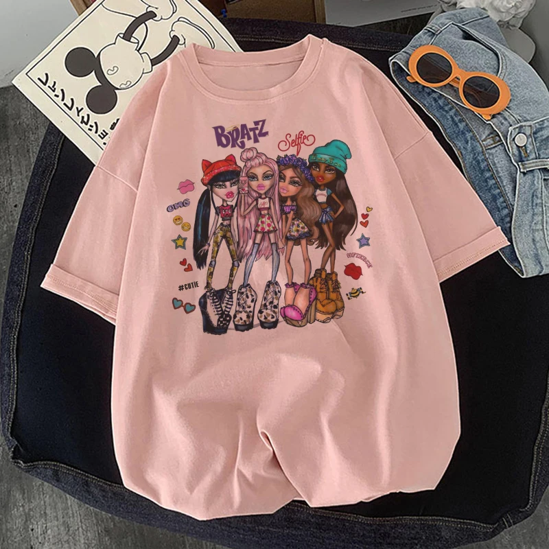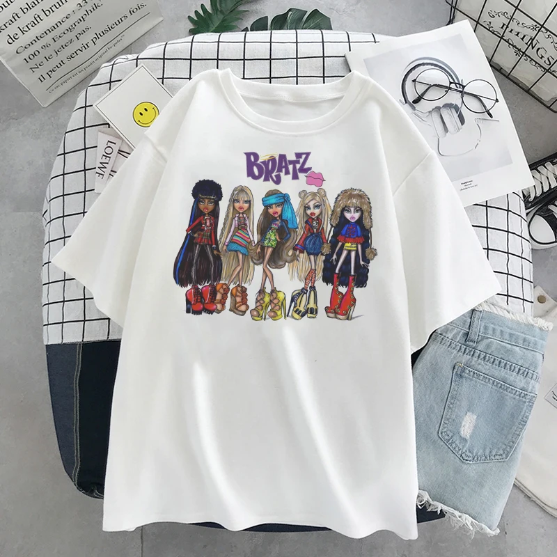 Футболка женская в стиле панк, винтажная тенниска с коротким рукавом и принтом Братц, большие размеры, Y2k, Повседневная модная майка большого размера d