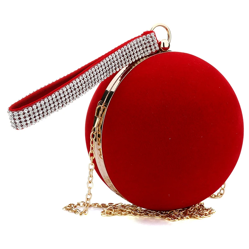 YYW уникальная бархатная Женская сумочка с железом, красная сумка-клатч через плечо, сферические вечерние сумки, маленькая сумочка на цепочке, на плечо, Bolsos Mujer