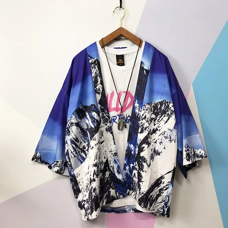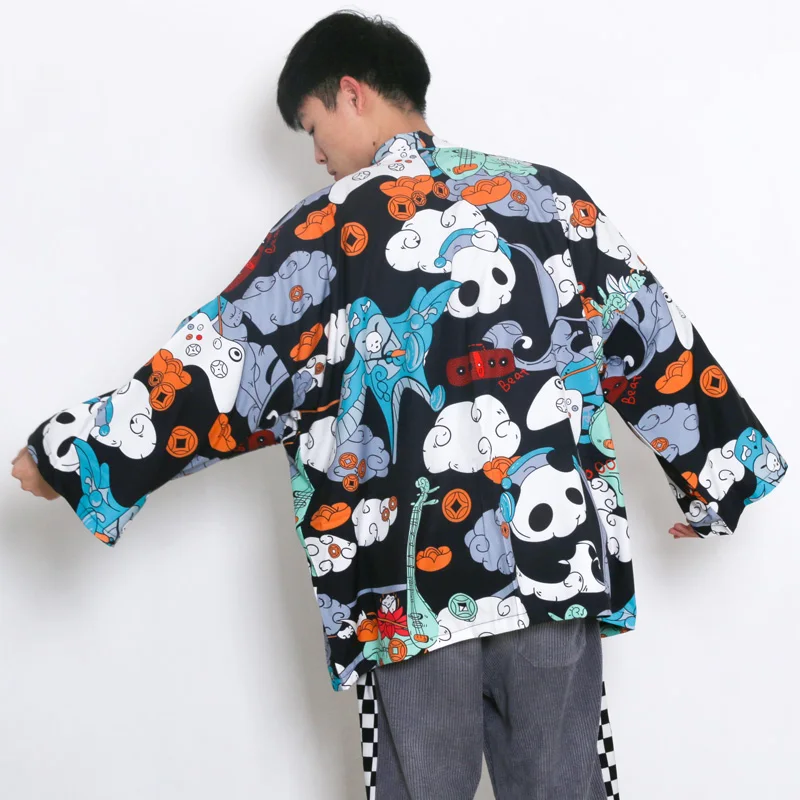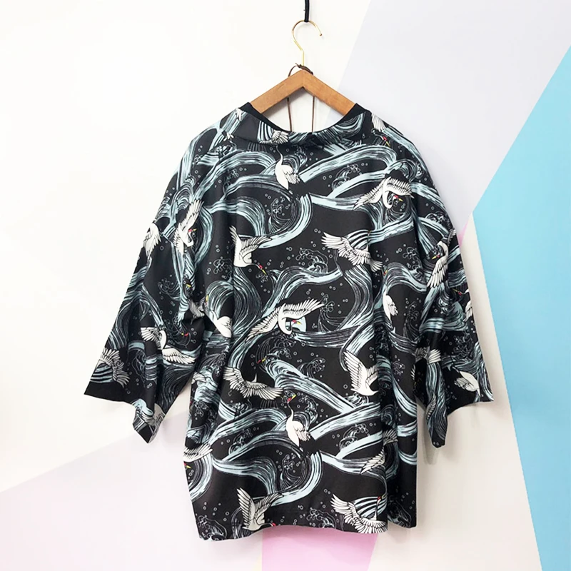 Кимоно для мужчин и женщин, кардиган в японском стиле, юката с Оби, хаори, Традиционная японская одежда с принтом карпа, черное
