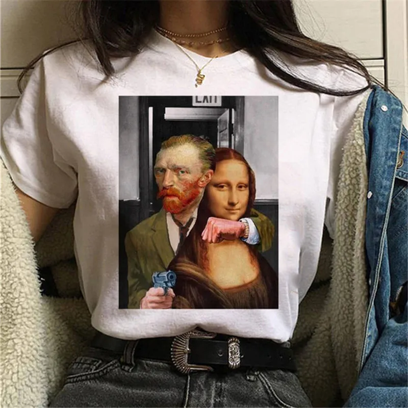 Мона Лиза маска Harajuku футболка с рисунком женские Ullzang Ретро футболка с забавным мультипликационным принтом в стиле 90-х футболка одежда в Корейском стиле, Т-образное