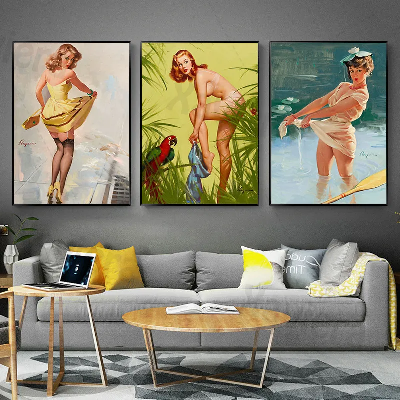 Скандинавская Ретро Картина на холсте сексуальная обнаженная женщин...