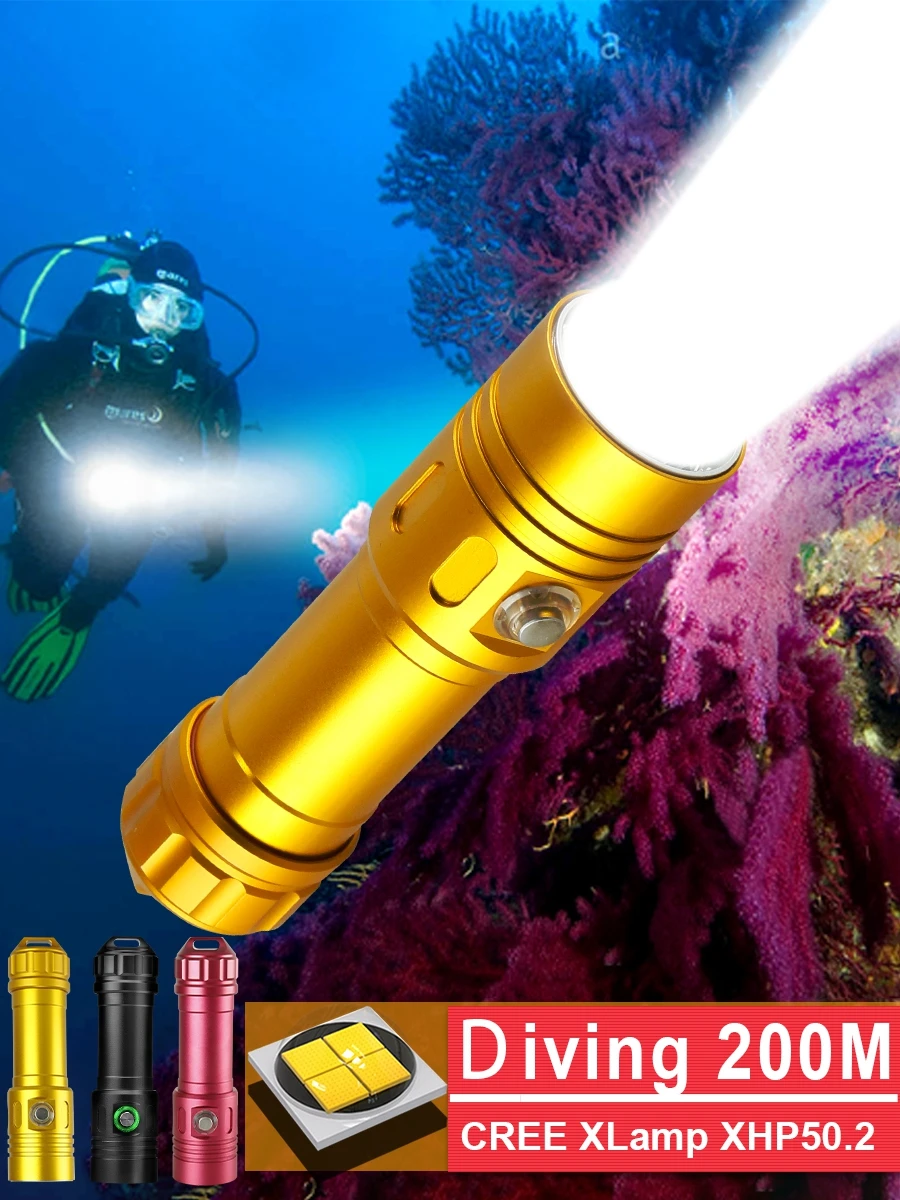200 м IPX8 профессиональная светодиодная вспышка для дайвинга Cree XHP70 подводная лампа Xhp50 велосипедный фонарь