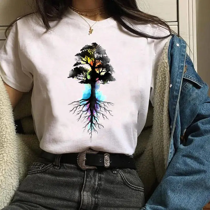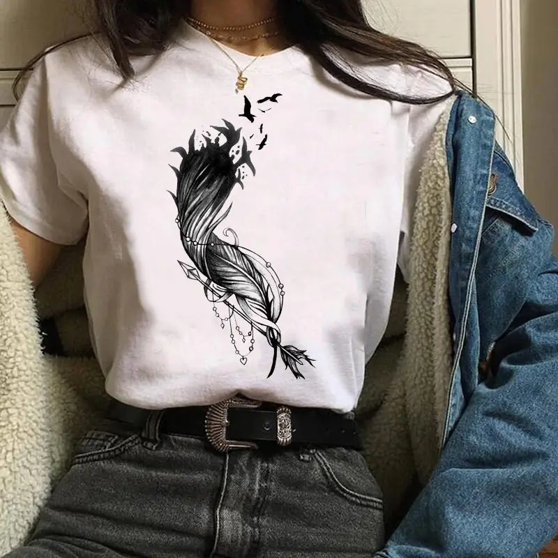 Женская футболка с принтом акварельных перьев, в стиле Харадзюку