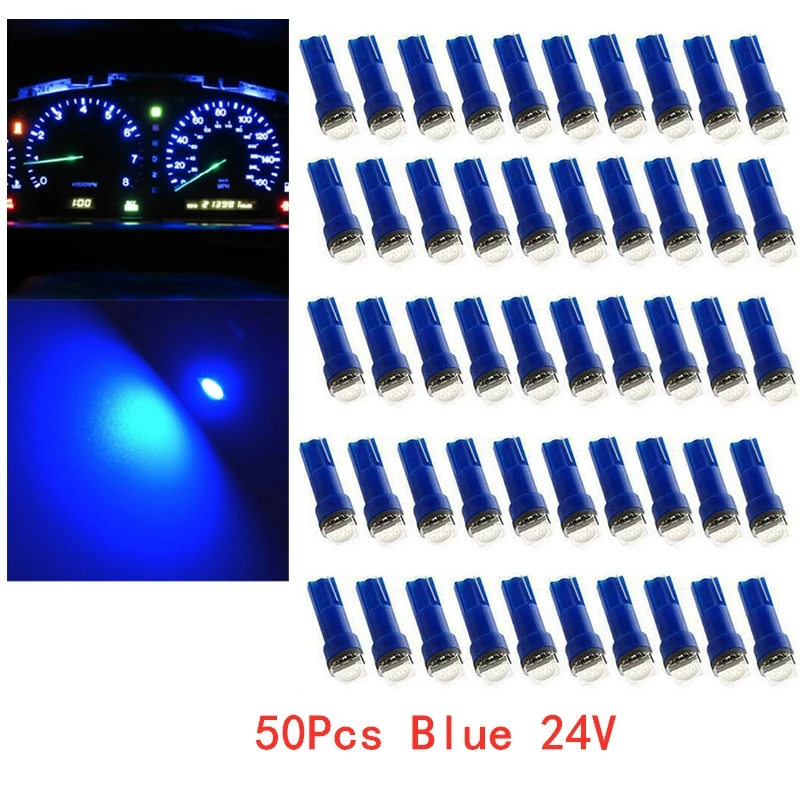 50 шт. T5 5050 1SMD 24V Синий лампочки на приборной панели светодиодный свет лампы автомобиля Lnstrument индикатор AC лампы авто аксессуары для интерьера
