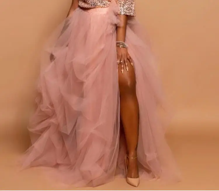 Женская юбка-макси из тюля, розовая длинная юбка для вечерние