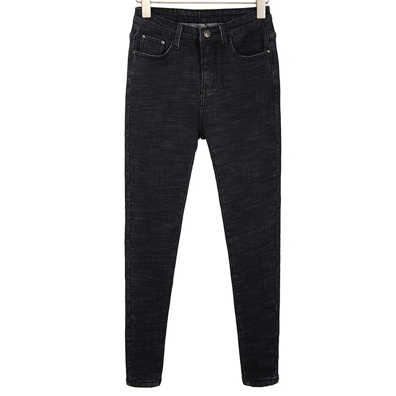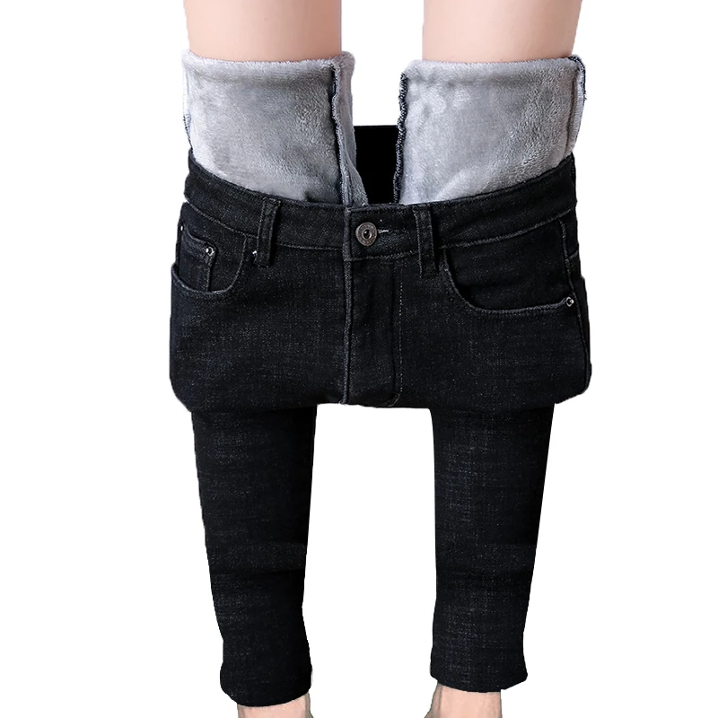 Джинсы Xingqing Женские однотонные зимние взрослые с высокой талией и флисовой подкладкой джеггинсы с карманами теплые брюки Женские панталоны