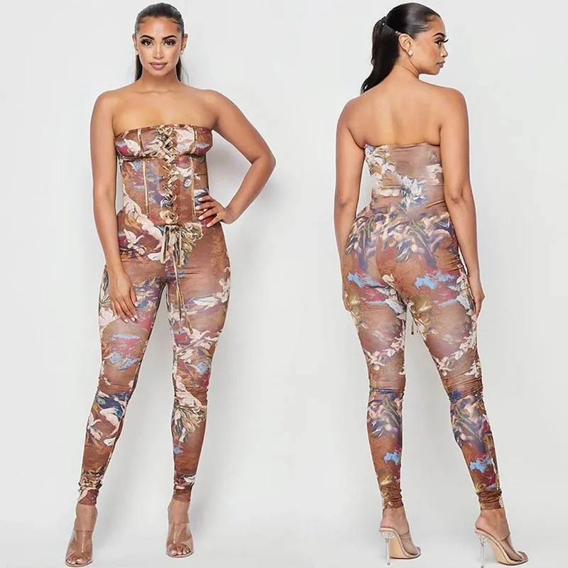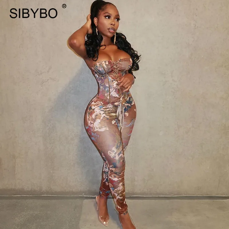 Женский комбинезон без бретелек Sibybo, винтажный комбинезон на корсете с открытыми плечами, сексуальный комбинезон с принтом s, цельный комбинезон 2020